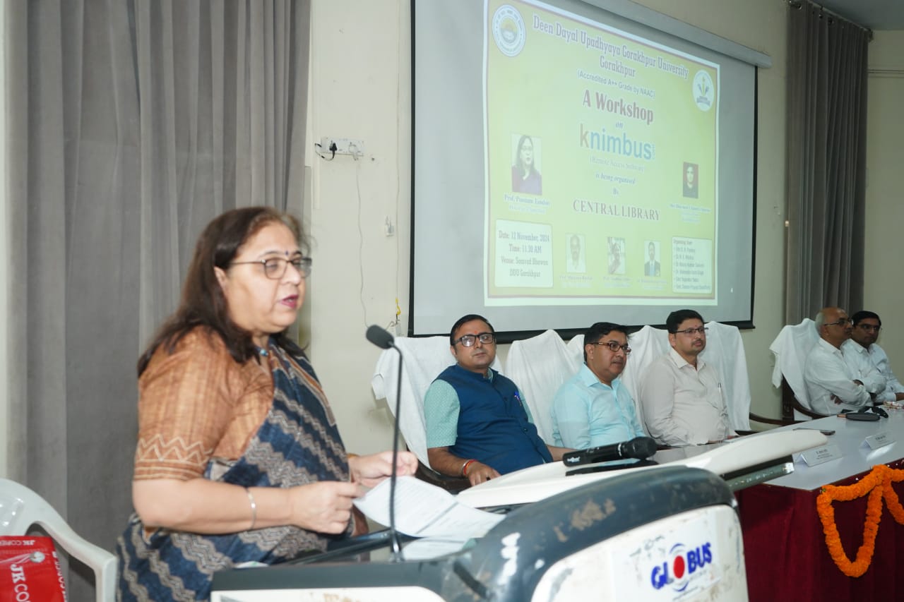 गोरखपुर (राष्ट्र की परम्परा)। दीनदयाल उपाध्याय गोरखपुर विश्वविद्यालय के केंद्रीय पुस्तकालय द्वारा संवाद भवन में ‘निंबस’ रिमोट एक्सेस सॉफ्टवेयर पर एक दिवसीय कार्यशाला संपन्न हुई। कार्यशाला का उद्देश्य शोधकर्ताओं और छात्रों को नवीनतम शैक्षिक संसाधनों तक सुगम और सुविधाजनक पहुंच प्रदान करना था, जिससे उनके शैक्षणिक और शोध कार्यों की गुणवत्ता में वृद्धि हो सके। कार्यशाला का उद्घाटन कुलपति प्रो. पूनम टंडन ने मां सरस्वती के चित्र पर माल्यार्पण एवं दीप प्रज्वलित कर किया। उद्घाटन भाषण में कुलपति ने विद्यार्थियों की शिक्षा में डिजिटल संसाधनों के महत्त्व पर प्रकाश डाला और आश्वस्त किया कि विश्वविद्यालय भविष्य में भी ऐसे प्रयास जारी रखेगा। इस अवसर पर मंच पर प्रो-वाइस-चांसलर प्रो. शांतनु रस्तोगी ने सभी प्रतिभागियों का स्वागत व धन्यवाद ज्ञापन डीन (लॉ) प्रो. अहमद नसीम द्वारा किया गया। मुख्य वक्ता के रूप में निंबस डॉट कॉम के विशेषज्ञ भुवनेश चंद्र शर्मा ने रिमोट एक्सेस सॉफ्टवेयर के विभिन्न पहलुओं और उसकी कार्यप्रणाली पर विस्तृत जानकारी दी। उन्होंने शोधकर्ताओं और छात्रों के लिए इस सॉफ्टवेयर के उपयोग के लाभों पर जोर दिया। कार्यशाला का संचालन डॉ. सूर्यकांत त्रिपाठी द्वारा कुशलतापूर्वक किया गया। कार्यशाला का आयोजन डॉ. बिभाष कुमार मिश्रा विश्वविद्यालय पुस्तकालयाध्यक्ष) के मार्गदर्शन में हुआ, जिन्होंने कार्यक्रम की रूपरेखा प्रस्तुत की। इस आयोजन में श्री एस.एन. पांडेय, डॉ. आर.के. मिश्रा, डॉ. मनोज कुमार द्विवेदी, महेन्द्र नाथ सिंह, श्री योगेन्द्र यादव, और श्रीमती सीमा प्रयाग चौधरी सहित पुस्तकालय टीम का महत्त्वपूर्ण योगदान रहा। कार्यशाला में अधिष्ठाता कला संकाय प्रो. राजवंत राव, एलएलबी के समन्वयक प्रो. जितेंद्र मिश्रा, प्रो. सुधीर श्रीवास्तव, प्रो. गौरहरी बेहरा, प्रो. विनय कुमार सिंह, प्रो. निखिलकांत शुक्ला, प्रो. सोमशंकर दुबे, प्रो. निधि चतुर्वेदी, प्रो. पूजा सिंह प्रो. आमोद राय , डॉ. ओम प्रकाश सिंह, डाॅ. मनीष पाण्डेय, देवेंद्र पाल, डॉ. दीपेंद्र मोहन सिंह, डॉ. स्मृति मल्ल, डॉ रंजनलता सहित विभिन्न विभागों और महाविद्यालयों के शिक्षक, शोधार्थी, और बड़ी संख्या में छात्र उपस्थित रहे। कार्यशाला के समापन पर प्रतिभागियों ने इस तरह की पहल के लिए विश्वविद्यालय प्रशासन और केंद्रीय पुस्तकालय की सराहना की। उन्होंने कहा कि इस प्रकार की कार्यशालाओं से उन्हें शोध में नवीनतम संसाधनों का लाभ उठाने का अवसर प्राप्त होगा, जिससे उनके शोध और अध्ययन की गुणवत्ता में सुधार होगा।
