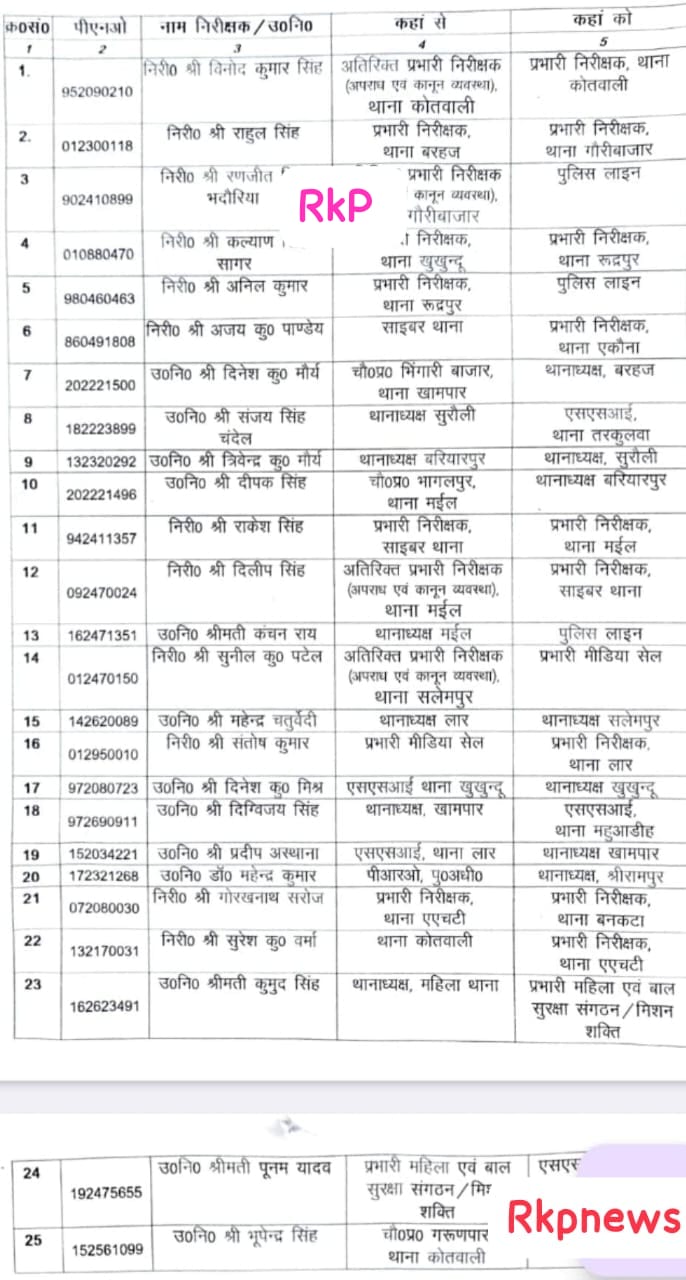 рддрдмрд╛рджрд▓реЗ рдХреА рд╕реВрдЪреА рдХреЗ рдЕрдиреБрд╕рд╛рд░, рдЙрдкрдирд┐рд░реАрдХреНрд╖рдХ рджрд┐рдиреЗрд╢ рдорд┐рд╢реНрд░рд╛ рдХреЛ рдЦреБрдЦреБрдВрджреВ рдерд╛рдиреЗ рдХреА рдХрдорд╛рди рд╕реМрдВрдкреА рдЧрдИ рд╣реИред рд╡рд╣реАрдВ, рдЦреБрдЦреБрдВрджреВ рдХреЗ рдкреВрд░реНрд╡ рдерд╛рдирд╛рдзреНрдпрдХреНрд╖ рдирд┐рд░реАрдХреНрд╖рдХ рдХрд▓реНрдпрд╛рдг рд╕рд┐рдВрд╣ рд╕рд╛рдЧрд░ рдХреЛ рд░реБрджреНрд░рдкреБрд░ рдХреЛрддрд╡рд╛рд▓ рдмрдирд╛рдпрд╛ рдЧрдпрд╛ рд╣реИред