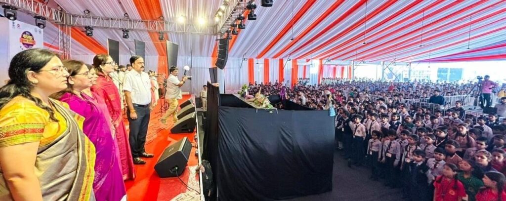 कार्यक्रम का संचालन ललित कला एवं संगीत विभाग के विद्यार्थियों ने किया। जैसे ही उनके सुरों में वंदे मातरम् का सामूहिक स्वर गूंजा, पूरा परिसर राष्ट्रभक्ति की भावना से अनुप्राणित हो उठा। इस अवसर पर प्रति कुलपति प्रो. शांतनु रस्तोगी, अधिष्ठाता छात्र कल्याण प्रो. अनुभूति दुबे, प्रो. उषा सिंह, प्रो. दिव्य रानी सिंह सहित विश्वविद्यालय परिवार, विभिन्न विद्यालयों के छात्र-छात्राएं, शिक्षक, अधिकारी एवं कर्मचारी बड़ी संख्या में मौजूद रहे। पूरा वातावरण “वंदे मातरम्” के जयघोष से गूंजता रहा।