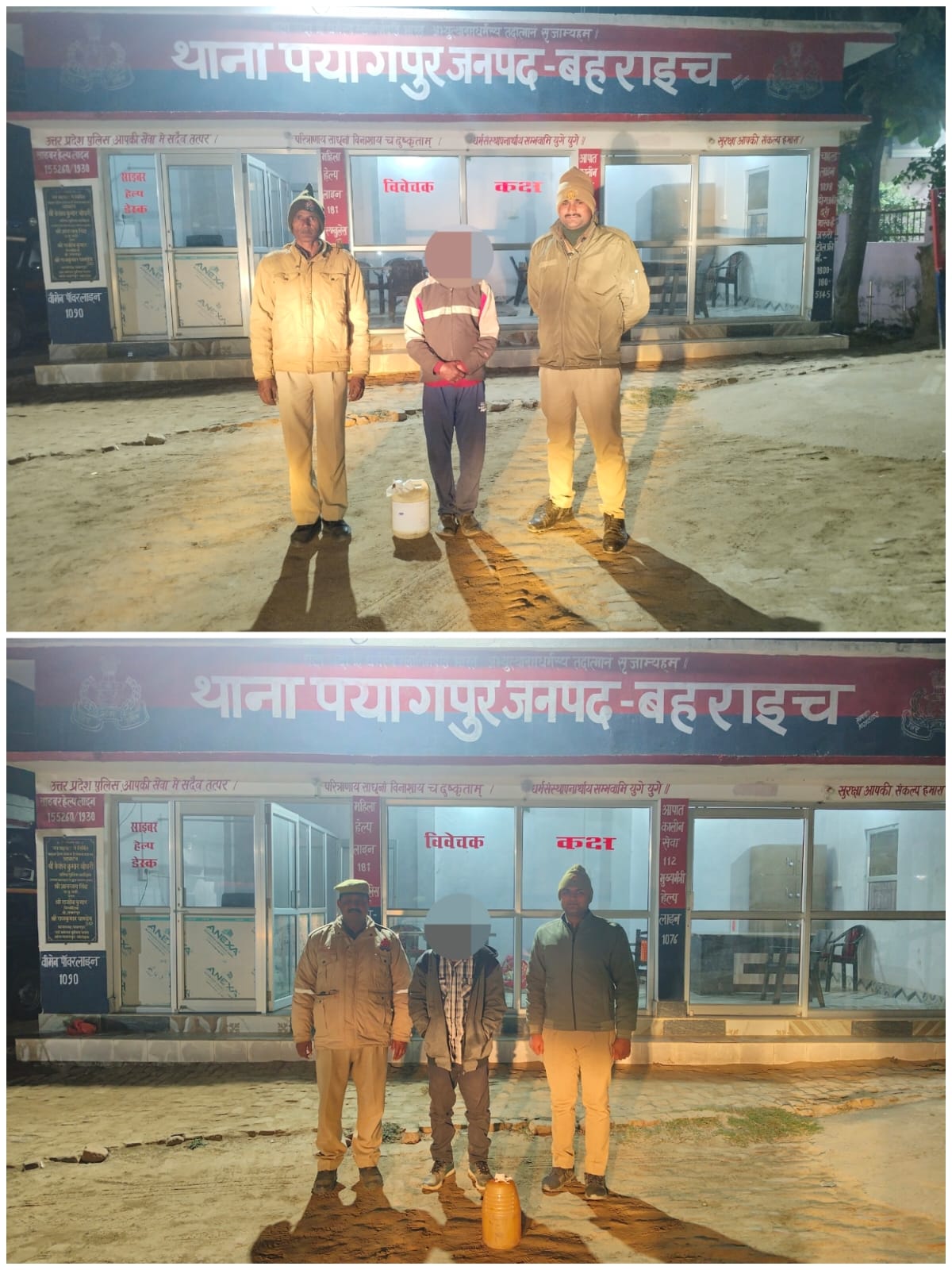 बहराइच (राष्ट्र की परम्परा)। पयागपुर थाना क्षेत्र अंतर्गत अवैध कच्ची शराब की बिक्री कर रहे तीन अभियुक्त को पयागपुर पुलिस ने गिरफ्तार कर आबकारी अधिनियम के तहत कार्यवाही कर न्यायालय भेजा है। प्रभारी निरीक्षक करुणाकर पांडे ने बताया कि क्षेत्र में शान्ति व्यवस्था कायम रखने हेतु पुलिस द्वारा चलाये जा रहे अभियान के क्रम में गुरुवार को गठित पुलिस टीम मे उप निरीक्षक राजेश कुमार पाण्डेय, अरुण कुमार द्विवेदी,कुलदीप कुमार आरक्षी शत्रुघ्न यादव,आफताब अहमद,शुभम शर्मा,विकास साहनी और वीरेन्द्र कुमार द्वारा तहसील पयागपुर के सामने से शिवराम वर्मा पुत्र बुद्धू वर्मा निवासी ग्राम करमोहना,नारायनपुर, विद्युत कालोनी के पास से रामउग्गर पुत्र रामऔतार निवासी ग्राम झाला तरहर और बड़ेलाल सिंह के भट्ठा चकवा अरकापुर के पास से रामदल पुत्र दयाराम निवासी ग्राम धोबियनपुरवा सतपेडिया को समय 5-5 लीटर अवैध कच्ची शराब व कुर्मिन पुरवा सरसा निवासी राजेश वर्मा को खुटेहना चौराहा के पास से चोरी की एक अदद साइकिल व गैस सिलेंडर के साथ गिरफ्तार किया गया है।थानाध्यक्ष करुणाकर पाण्डेय ने बताया कि गिरफ्तार अभियुक्तों के विरुद्ध अभियोग पंजीकृत कर कार्यवाही की जा रही है।