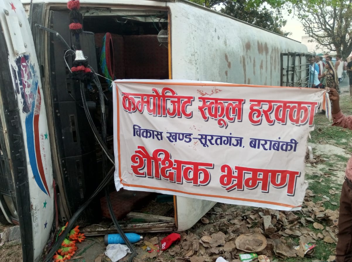 मंगलवार को समय करीब 18.00 बजे कम्पोजिट स्कूल, हरक्का विकासखण्ड सूरतगंज जपनद बाराबंकी के बच्चे, शैक्षणिक भ्रमण कर बस संख्या UP 32 B 5892 से चिड़ियाघर जनपद लखनऊ से वापस आ रहे थे, तभी थाना देवा क्षेत्रान्तर्गत देवा-फतेहपुर रोड पर सलारुर के पास बस चालक द्वारा मोटर साइकिल UP 41 AN 2597 को बचाते समय बस अनियंत्रित होकर पलट गई, जिससे बस परिचालक सहित 04 लोगों की मृत्यु हो गई। शेष 25 बच्चे जिनको सामान्य चोटें आई थीं उन्हें सीएचसी देवा से प्राथमिक उपचार के बाद घर भेजा गया है। परिवहन विभाग से जानकारी करने पर ज्ञात हुआ कि बस का फिटनेस सर्टिफिकेट वैध है। मौके पर यातायात सुचारू रूप से संचालित है। सूत्रों से मिली जानकारी के अनुसार बस परिचालक सुफियान पुत्र रिजवान निवासी सिद्धौर थाना असन्द्रा जनपद बाराबंकी सहित कामिनी उम्र 14 वर्ष निवासी मदरहा थाना मोहम्मदपुर खाला जनपद बाराबंकी, हिमांशी उम्र 18 वर्ष निवासी पर्वतपुर थाना मोहम्मदपुर खाला जनपद बाराबंकी, शुभी उम्र 16 वर्ष पर्वतपुर थाना मोहम्मदपुर खाला जनपद बाराबंकी की मृत्यु हो गई।जबकि दुर्घटना में घायल बच्चो को मेडिकल कालेज लखनऊ रेफर कर दिया गया। उपचार के बाद बच्चो को उनके घर भेज दिया गया।जबकि सूचना पर पहुची पुलिस ने ग्रामीणों की मदद से राहत व बचाव कार्य कर सभी घायल बच्चो को जिला अस्पताल भेजवाया गया।