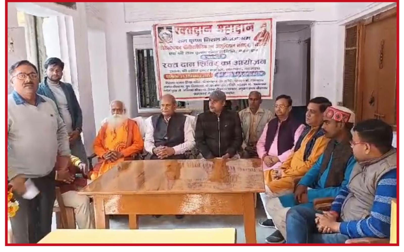 शंकर इंटर कालेज प्रांगण में आए हुए रक्तदाताओं साथ विवेकानंद पॉलीक्लिनिक एवम आयुर्विज्ञान संस्थान के चिकित्सकों की उपस्थिति में मुख्य अतिथि संघ जिला प्रचारक अजय , महेन्द्र प्रताप सिंह जिला उपाध्यक्ष किसान संघ, नगर संघचालक गोपाल साथ आए संघ परिवार एवम पत्रकार बंधुओं की उपस्थिति में विधि विधान से मंत्रोचारण साथ फीता कटकर निशुल्क रक्तदान शिविर का शुभारंभ किया गया।