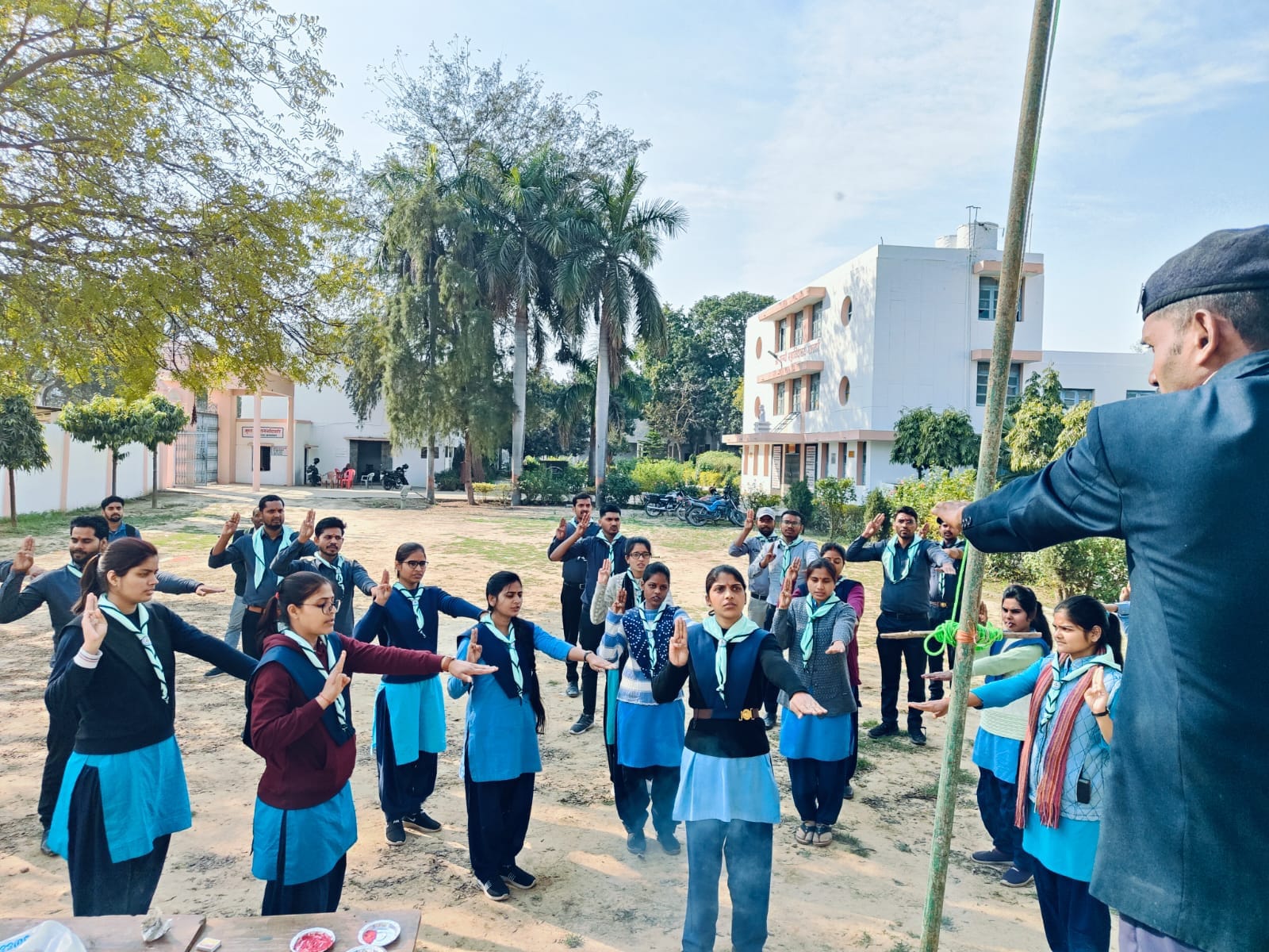कहा ऐसा करके लोग अपने जीवन में अभूतपूर्व बदलाव ला सकते है। प्रो० कैलाशनाथ गुप्त विभागाध्यक्ष बीएड विभाग ने छात्र छात्राओं को संबोधित करते हुए कहा कि आत्म सुरक्षा हेतु स्काउट गाइड का प्रशिक्षण अति आवश्यक है।स्काउट गाइड प्रशिक्षण को अर्ध सैनिक प्रशिक्षण भी कहा जाता है। उन्होंने स्काउट प्रशिक्षुओं को स्काउट एवं गाइड के दिशा निर्देशों एवं नियमावली को बताया। इस दौरान प्रो० अखिलेश चन्द्र व प्रो0 प्रेमचन्द्र एवं डॉoजगदीश कुमार, चन्दन कुमार, डॉ० शुभ्रा श्रीवास्तव, नित्यानन्द, व लेखाकार दीनानाथ मिश्र, उपेन्द्र कुमार राय, राजनिगम व अन्यकर्मचारी उपस्थित रहे l