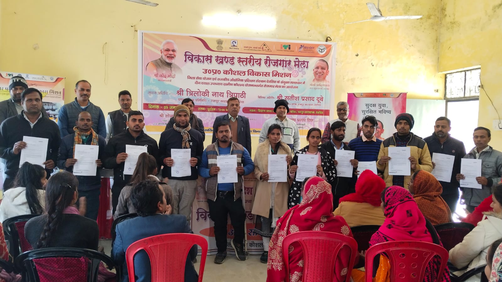 देवरिया(राष्ट्र की परम्परा)।   विकास खण्ड परिसर रामपुर कारखाना में दीन दयाल उपाध्याय ग्रामीण कौशल्य योजना अंतर्गत उत्तर प्रदेश कौशल विकास मिशन,राजकीय आई०टी०आई० एवं जिला सेवा योजन कार्यालय के संयुक्त तत्वाधान में विकास खण्ड स्तरीय रोजगार मेले का आयोजन किया गया।