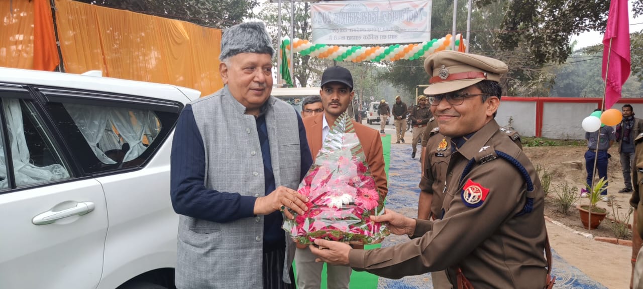 देवरिया (राष्ट्र की परम्परा)। 74 वें गणतन्त्र दिवस के अवसर पर मुख्य अतिथि कृषि मंत्री उ0प्र0 सूर्य प्रताप शाही द्वारा पुलिस लाइन देवरिया में झंडा फहराते हुए परेड का मान प्रणाम लिया गया। परेड में सम्मिलित टोली प्रथम टोली नागरिक पुलिस,द्वितीय टोली सशस्त्र पुलिस तृतीय टोली पुलिस कार्यालय ,चतुर्थ टोली सशस्त्र पुलिस लाईन देवरिया,पंचम टोली पी0ए0सी, षष्ठम टोली महिला पुलिस देवरिया, सप्तम टोली महिला पुलिस कार्यालय देवरिया अष्टम टोली 49वीं वाहिनी एनसीसी, नवम् टोली 52 वीं वाहिनी एनसीसी, मोटर साइकिल दस्ता, डॉग स्कवायड, यू0पी0 112 वाहन दस्ता, यू0पी0 112 महिला वाहन दस्ता दंगा निरोधक वाहन रेड़ियों दस्ता साइबर क्राइम सेल विधि विज्ञान अग्निशमन दल परेड में शामिल रहे।