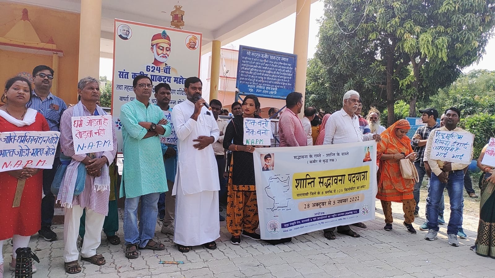 समाज मे शांति, सद्भावना, प्रेम और भाईचारे का संदेश लेकर 9 दिवसीय शांति एवं सद्भावना पदयात्रा का शुभारंभ शुक्रवार को वाराणसी के लहरतारा स्थित संत कबीर प्राकट्य स्थल से किया गया। पदयात्रा का आयोजन साझा संस्कृति मंच वाराणसी एवं जन आंदोलनो के राष्ट्रीय समन्वय के संयुक्त तत्वावधान में किया गया है। कबीरपंथ के महंत गोविंद दास जी ने हरी झंडी दिखाकर यात्रा का शुभारंभ किया.