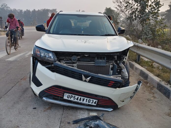 हादसे में फोर व्हीलर बुरी तरह क्षतिग्रस्त हो गई। वाहन में सवार उपेंद्र मल, निवासी नत्थूपुर, मधुबन (मऊ), जो निजी नौकरी करते हैं, काम समाप्त कर घर लौट रहे थे। उनके साथ बच्चे और अन्य लोग भी मौजूद थे, जो इस दुर्घटना में बाल-बाल बच गए। राहत की बात यह रही कि किसी को गंभीर चोट नहीं आई।