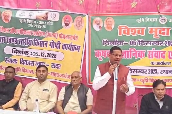 महराजगंज(राष्ट्र की परम्परा)। विश्व मृदा दिवस पर शुक्रवार को जिला मुख्यालय पर आयोजित विशाल किसान गोष्ठी एक बड़े मेले का रूप ले गई, जहां अलग-अलग गांवों से पहुंचे किसानों ने नई तकनीक, आधुनिक खेती और मृदा संरक्षण से जुड़ी जानकारी उत्साह के साथ सुनी। कार्यक्रम में सदर विधायक जय मंगल कन्नौजिया ने कहा कि मृदा ही राष्ट्र की रीढ़ है, मिट्टी सुरक्षित होगी तो किसान समृद्ध होगा और देश आगे बढ़ेगा। विधायक ने किसानों को संबोधित करते हुए कहा कि आज खेती में बढ़ती लागत का सबसे बड़ा कारण है—बिना परीक्षण के रासायनिक उर्वरकों का गलत उपयोग। उन्होंने किसानों से अपील की कि वे मृदा परीक्षण को खेती की पहली जरूरत बनाएं और उसके आधार पर खाद का प्रयोग करें। इससे न केवल खेत की उपज बढ़ेगी बल्कि मिट्टी की शक्ति भी लंबे समय तक बनी रहेगी। गोष्ठी के दौरान कृषि वैज्ञानिकों ने किसानों को बताया कि समय के साथ मिट्टी में कार्बनिक पदार्थ कम होते जा रहे हैं, जिससे उत्पादन प्रभावित होता है। उन्होंने फसल चक्र, जैविक उर्वरकों, प्राकृतिक खेती, और सतत कृषि पद्धतियों को अपनाने पर जोर दिया। विशेषज्ञों ने कहा कि वैज्ञानिक पद्धति अपनाने पर किसान कम लागत में अधिक उपज हासिल कर सकते हैं। कार्यक्रम में सदर विधायक ने किसानों को उन्नत किस्म के बीज, कीटनाशक और कृषि सामग्री वितरित की। उन्होंने कहा कि सरकार द्वारा संचालित मृदा स्वास्थ्य कार्ड योजना, जैविक खेती को बढ़ावा, और उन्नत तकनीक किसानों की आय दोगुनी करने की दिशा में महत्वपूर्ण कदम हैं। ब्लॉक प्रमुख प्रतिनिधि इंजीनियर विवेक गुप्ता ने बताया कि सरकार समय से गुणवत्तापूर्ण बीज उपलब्ध कराने के लिए विशेष निगरानी कर रही है, ताकि रबी व खरीफ दोनों मौसमों में किसान बेहतर उत्पादन कर सकें। इस अवसर पर केंद्रीय वित्त राज्य मंत्री पंकज चौधरी के प्रतिनिधि जगदीश मिश्रा, पूर्व जिला उपाध्यक्ष सानन्द पटेल, उप कृषि निदेशक संजीव कुमार, केंद्र प्रभारी संजय पटेल, राकेश अग्रहरी, हेमंत श्रीवास्तव सहित कई जनप्रतिनिधि और तकनीकी सहायक मौजूद रहें।