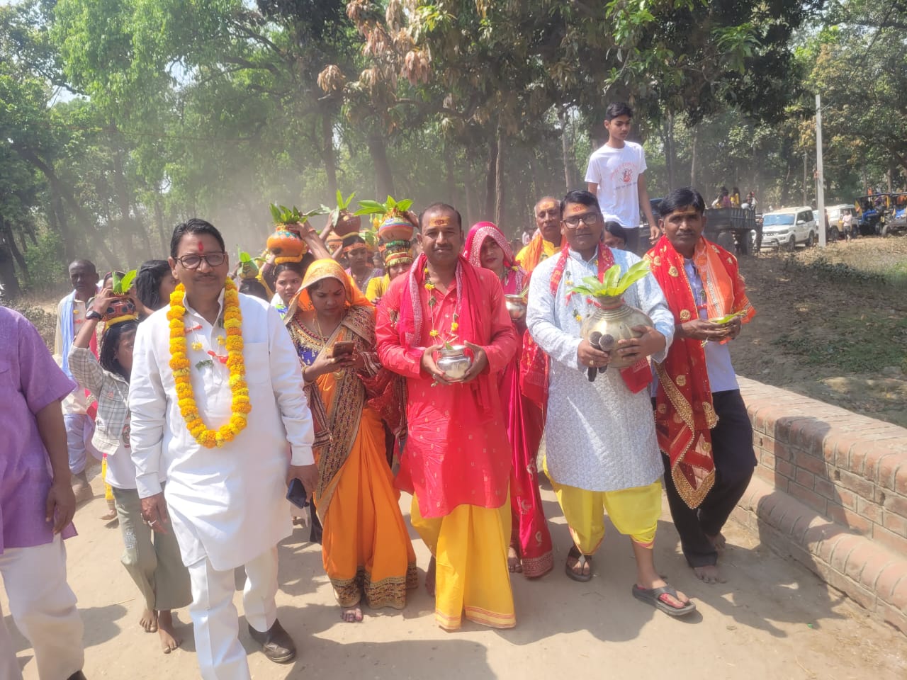 शोभायात्रा मंदिर परिसर से विधिवत पूजन-अर्चन के बाद प्रारंभ हुई, जो बसंतपुर, रामपुर बल्डिंहा, कफवा होते हुए बैकुंठी धाम घुघली पहुंची। यज्ञ आचार्य शिवकुमार मिश्र के सानिध्य में वैदिक मंत्रोच्चार के बीच पीत वस्त्र धारण किए लगभग 301 कन्याओं ने कलश में जल भरकर धार्मिक अनुष्ठान में भाग लिया। यह दृश्य अत्यंत श्रद्धा और आध्यात्मिक ऊर्जा से परिपूर्ण रहा। इसके उपरांत शोभायात्रा पुनः बैकुंठी धाम से भुवना, भुवनी, मंगलपुर पटखौली, मठिया और बसंतपुर होते हुए अपने गंतव्य झारखंडी शिव मंदिर परिसर पहुंची।