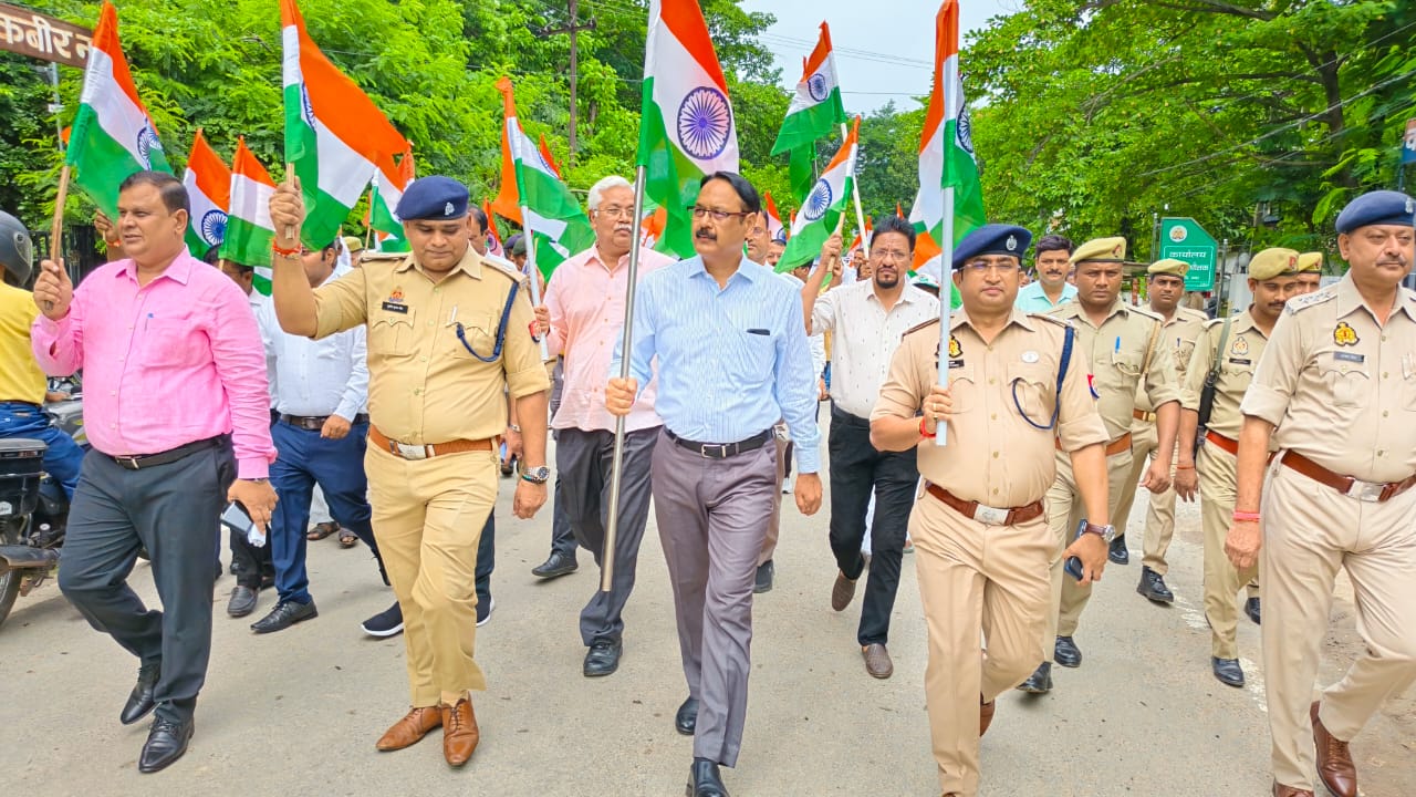 संत कबीर नगर (राष्ट्र की परम्परा)। जिलाधिकारी आलोक कुमार के नेतृत्व में हर घर तिरंगा कार्यक्रम के अंतर्गत आज विकास भवन से मौलाना आजाद इंटर कॉलेज तक भव्य तिरंगा यात्रा निकाली गई। यात्रा में पुलिस अधीक्षक संदीप कुमार मीना, अपर जिलाधिकारी (वित्त एवं राजस्व) जय प्रकाश, मुख्य विकास अधिकारी जयकेश त्रिपाठी तथा अपर पुलिस अधीक्षक सुशील कुमार सिंह सहित अन्य अधिकारी भारतीय तिरंगा हाथों में लेकर शामिल हुए।