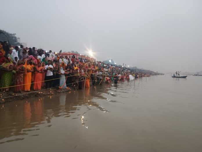 दोपहर से ही नगर एवं ग्रामीण क्षेत्रों से महिलाओं का सैलाब घाटों की ओर उमड़ पड़ा। व्रतियों ने अपनी-अपनी बेदी पर कलश, फल-फूल और पूजन सामग्री सजाकर भगवान सूर्य की आराधना आरंभ की। अस्ताचलगामी सूर्य को अर्घ्य अर्पित करने के बाद श्रद्धालु परिवारजनों के साथ पारंपरिक छठ गीत गाते हुए घरों को लौटे।