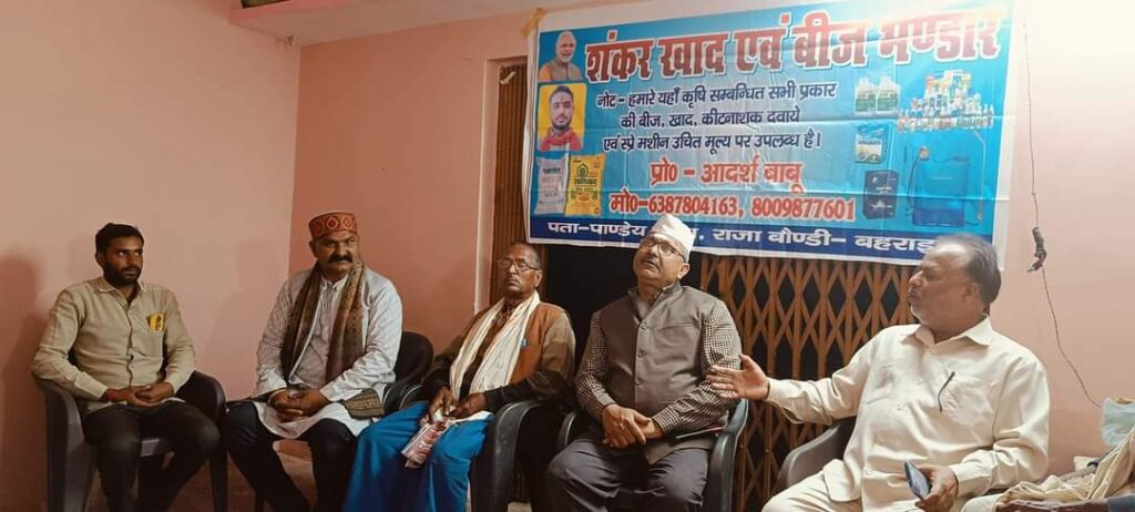 बहराइच (राष्ट्र की परम्परा) । ऐतिहासिक बौण्डी महसी के ग्रामपंचायत पाण्डेयपूरा चौराहा पर आयोजित विषमुक्त खेती नशामुक्त गाँव विषयक पर आधारित चौपाल का आयोजन किया गया। चर्चा-परिचर्चा में किसान परिषद की ओर से आयोजित किसान चौपाल को संबोधित करते हुए मालवीय मिशन अध्यक्ष संजीव श्रीवास्तव एडवोकेट ने बताया की रासायनिक उर्वरकों के अन्धाधुंध उपयोग एवं कीटनाशक दवाइयों के खेती किसानी में लगातार प्रयोग से कृषि उत्पाद विषैला हो चुका है जिसके उपयोग से हम सब लाइलाज बीमारियों से ग्रसित हो रहे हैं धरती भी बांझ हो रही है।समाजसेवी किसान परिषद संरक्षक अनिल त्रिपाठी एडवोकेट ने खेती किसानी बागवानी एवं गौपालन को मानवजाति के संरक्षण के लिए परम आवश्यक बताते हुए स्थानीय कृषि रोजगार आधारित खेती को बढ़ावा देने का आवाहन किया तथा घाघरा नदी के कछार में कृषि विज्ञान आधारित अत्याधुनिक खेती के लिये कृषि वैज्ञानिकों से समन्वय बनाकर जगह-जगह कृषि चौपाल आयोजित करने की बात कही।चौपाल का संचालन करते हुए आयोजक पर्यावरण विद पुण्डरीक पाण्डेय ने घाघरा नदी के कटान के बाद खेती किसानी में आ रही समस्याओं व जटिलताओं की ओर ध्यान आकृष्ट करवाते हुए कृषि एवं जिला प्रशासन से घाघरा व सरयू नदी कटान प्रभावित इलाकों में कृषि गौपालन सब्जी व फल उत्पादन हेतु विशेष योजना से आच्छादित करवाये जाने की मांग की तथा जगह जगह कृषि चौपाल आयोजन हेतु विचार विमर्श किया।आयोजित चौपाल की अध्यक्षता प्रगतिशील किसान बाला प्रसाद पाण्डेय ने किया,आयोजित चौपाल में प्रमुख रूप से शिक्षाविद पंडित राम सागर पाण्डेय , प्रगतिशील किसान गिरजा शंकर मिश्र , पर्यावरण विद समाजसेवी राकेश चन्द्र श्रीवास्तव , शिव प्रकाश ,
