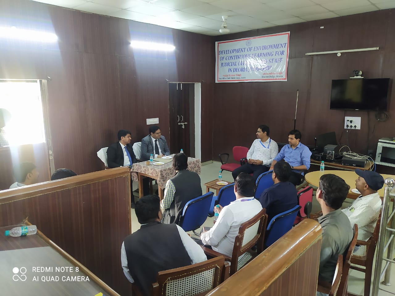 गुरुवार को जनपद न्यायाधीश/अध्यक्ष जिला विधिक सेवा प्राधिकरण देवरिया देवेन्द्र सिंह के निर्देशानुसार जिला विधिक सेवा प्राधिकरण देवरिया के तत्वावधान में, राष्ट्रीय लोक अदालत 13.07.2024 की सफलता हेतु समस्त बैंक प्रबन्धकों व फाइनेन्स कम्पनीयों के प्रतिनिधियों के साथ बैठक आहूत की गयी। राष्ट्रीय लोक अदालत के नोडल अधिकारी संजय कुमार सिंह ने समस्त बैंक/फाइनेन्स कम्पनीयों के प्रबन्धकों को निर्देशित किया कि राष्ट्रीय लोक अदालत में प्री-लिटिगेशन स्तर पर बैकों के ऋण वसूली मामलों का निस्तारण किया जाना हैं, जिसके लिए वे अधिक से अधिक संख्या में मामलों को चिन्हित करे जिसे सुलह समझौते के आधार पर राष्ट्रीय लोक अदालत में निस्तारित कराया जा सकें। जिला विधिक सेवा प्राधिकरण के सचिव/अपर जिला एवं सत्र न्यायाधीश मनोज कुमार तिवारी ने कहा कि समस्त बैंक प्रबन्धक, बैंक में नोडल अधिकारी नियुक्त करें। जिससे राष्ट्रीय लोक अदालत में लगने वालें मामलों का चिन्हांकन एवं निस्तारण व्यापक पैमाने पर किया जा सकें। सचिव ने कहा कि राष्ट्रीय लोक अदालत की सफलता हेतु व्यापाक स्तर पर प्रचार-प्रसार करने के लिए पोस्टर, बैनर व अन्य इलेक्ट्रॉनिक माध्यमों से आमजनमानस को जागरूक करें।