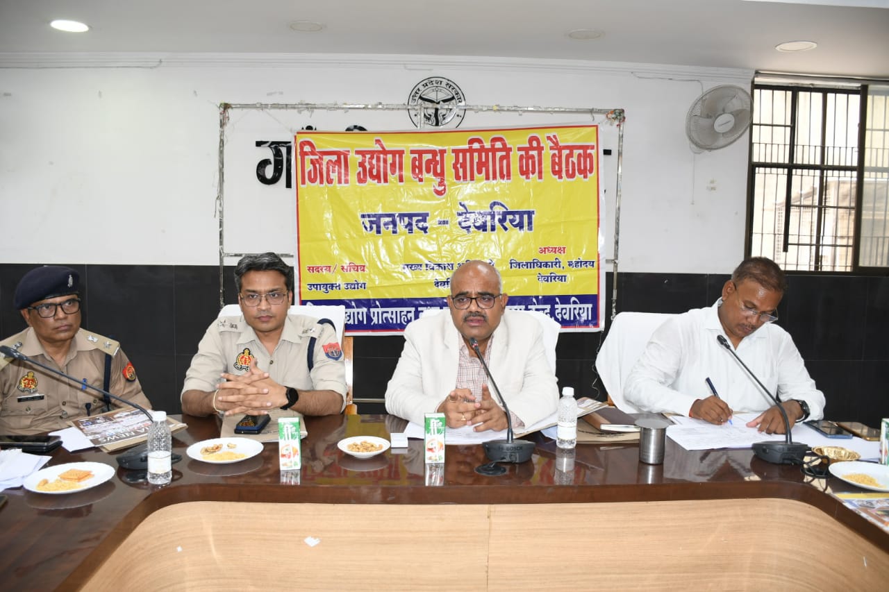 जिलाधिकारी ने औद्योगिक संस्थान देवरिया में नाली निर्माण में अनावश्यक विलंब होने एवं बिना अनुमति के जनपद सीमा से बाहर होने पर गहरी नाराजगी जताते हुए अधिशासी अभियंता निर्माण खंड मनोज पांडेय का एक दिन का वेतन काटने तथा शासन को अनुशासनात्मक कार्रवाई करने हेतु पत्र लिखने का निर्देश दिया। पुलिस अधीक्षक संकल्प शर्मा ने उद्यमियों को सुरक्षित वातावरण के लिए आश्वस्त किया।