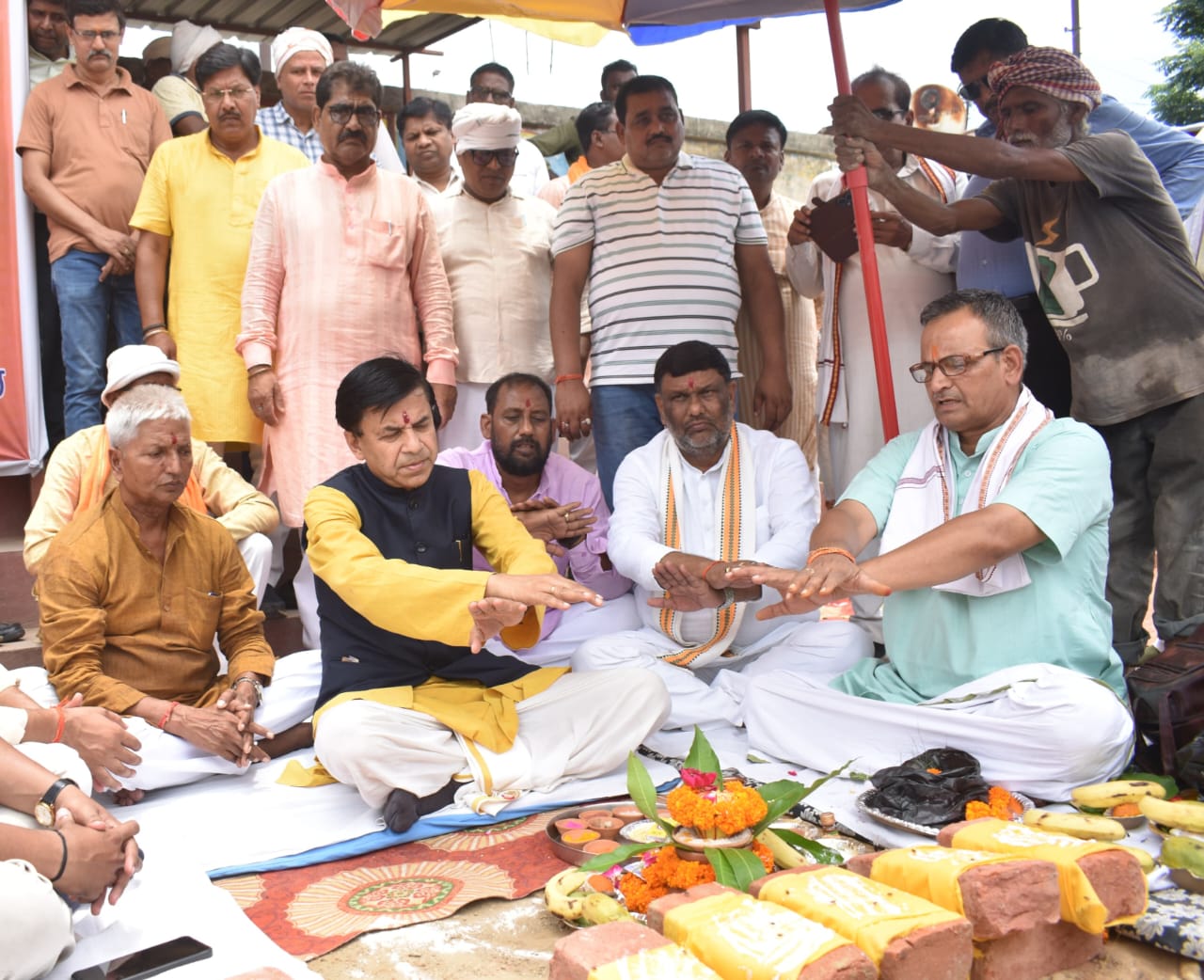 देवरिया (राष्ट्र की परम्परा)। सदर सांसद शशांक मणि ने शुक्रवार को देवरिया बस अड्डे पर प्रस्तावित टिन शेड के निर्माण के लिए भूमि पूजन कर निर्माण की आधारशिला रखी। पिछले काफी दिनों से बस अड्डे के भवन के ध्वस्तीकरण के कारण यात्रियों को काफी असुविधा का सामना करना पड़ता था।प्रस्तावित बस स्टेशन के निर्माण में विलंब होने तथा अत्यधिक गर्मी और धूप से यात्रियों के बचाव के लिए सदर सांसद ने परिवहन मंत्री दयाशंकर सिंह से वार्ता कर तब तक के लिए अस्थाई व्यवस्था करने का आग्रह किया था। जिसके लिए परिवहन विभाग से 34 लाख रुपया उपलब्ध कराया गया है। शुक्रवार को परिवहन विभाग के अधिकारियों और पार्टी पदाधिकारियों की उपस्थिति में सदर सांसद ने अस्थाई टिन शेड के निर्माण की आधारशिला रखी। उन्होंने कहा कि लंबी प्रतिक्षा के बाद टिन शेड के निर्माण से यात्रियों को काफी राहत मिलेगी। इस दौरान जिला उपाध्यक्ष राजेश कुमार मिश्रा, गंगा सिंह कुशवाहा, जिला महामंत्री श्रीनिवास मणि त्रिपाठी, प्रमोद शाही, अंकुर राय, दिवाकर मिश्रा, सचिंद्र शाही दीपू, सुभाष तिवारी, मंडल अध्यक्ष अरविंद चौहान, राकेश मणि त्रिपाठी सहित अन्य लोग मौजूद रहे।