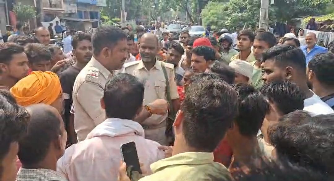 विरोध में स्थानीय लोगो ने गाड़ी का सीसा फोड़ा, सड़क किया जाम