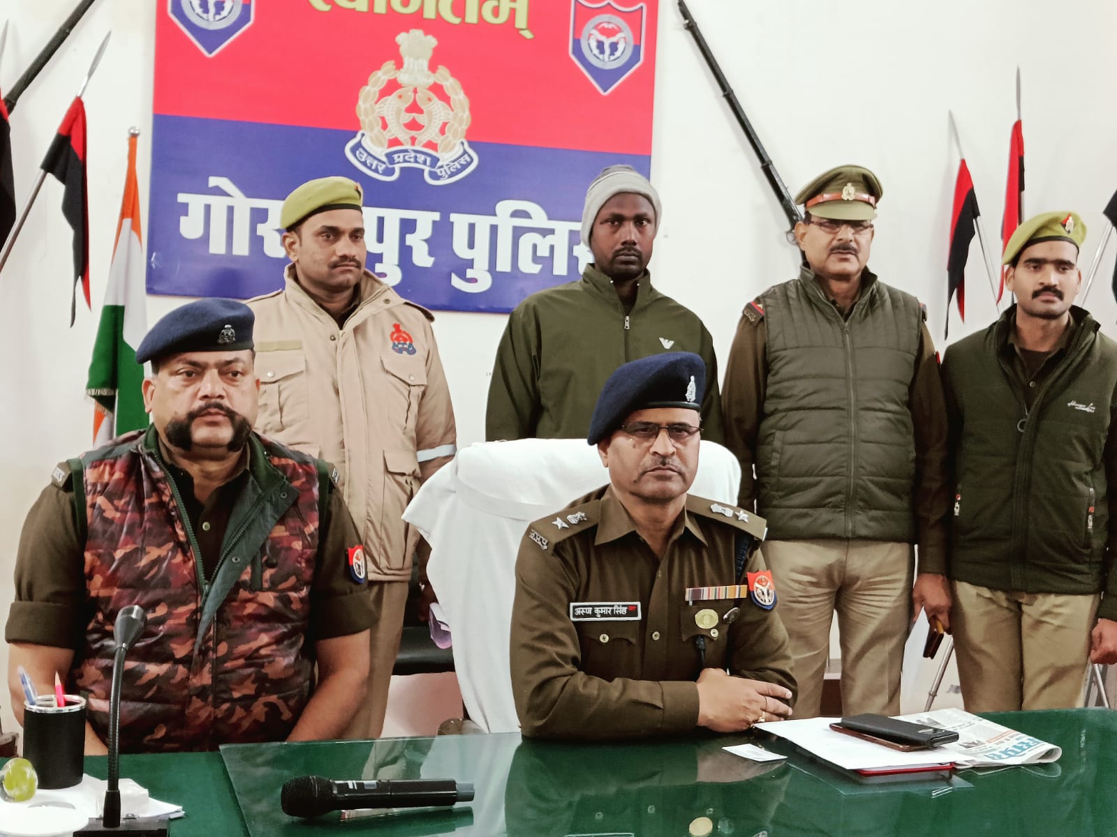 गोरखपुर(राष्ट्र की परम्परा)l बेलीपार थाना क्षेत्र में दिसंबर 2022 में चाकू मारकर हत्या कर देने वाले फरार चल रहे अभियुक्त, अर्जुन निषाद को बेलीपार पुलिस ने ककराखोर गांव हनुमान मंदिर के पास से गिरफ्तार करने में सफलता प्राप्त की। हत्या में संलिप्त अन्य अभियुक्तों को बेलीपार पुलिस ने पहले ही गिरफ्तार कर जेल भेज चुकी है। पुलिस अधीक्षक दक्षिणी अरुण कुमार सिंह ने व्हाइट हाउस सभागार में प्रेस वार्ता करते हुए बताया कि, मुकदमा अपराध संख्या 244/ 2022 धारा 147 148 302 352 506 34 भादवि से संबंधित वांछित अभियुक्त अर्जुन निषाद पुत्र भोला निषाद निवासी जुड़ापुर थाना बेलीपार को, ककराखोर हनुमान मंदिर के पास से गिरफ्तार कर अग्रिम कार्यवाही कर रही है। इसमें समलित अन्य अभियुक्तों को पहले ही गिरफ्तार कर जेल भेजा जा चुका है।