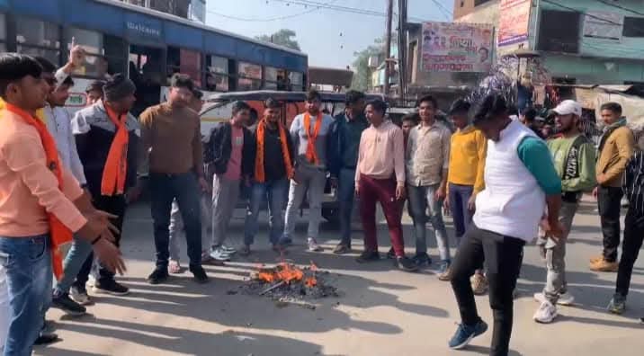 विद्यालय प्रबंधक का फूका पुतला जांच की उठाई मांग