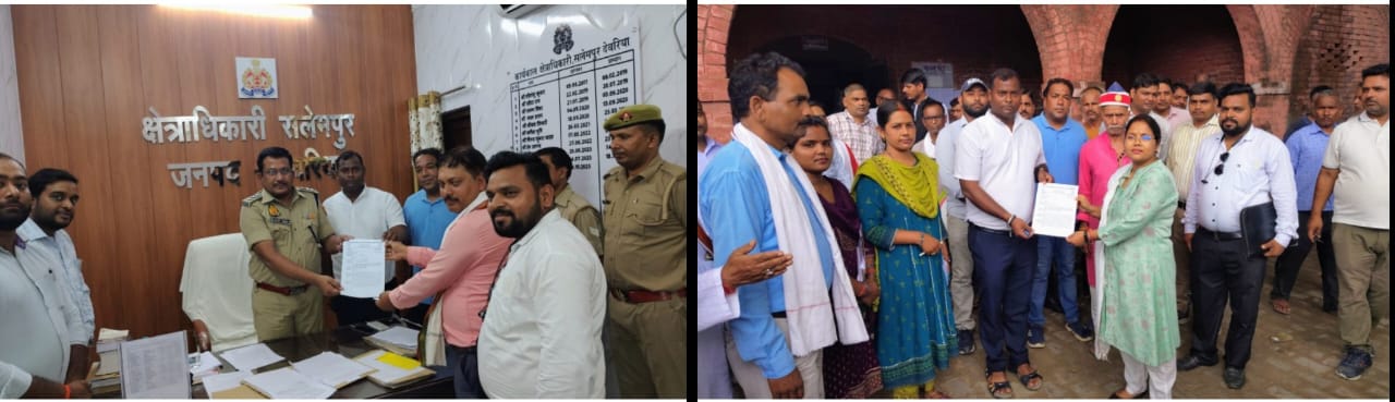 देवरिया/सलेमपुर।(राष्ट्र की परम्परा डेस्क) तहसील परिसर में लेखपाल अशोक कुमार के साथ कथित दुर्व्यवहार के मामले ने अब नया मोड़ ले लिया है। मंगलवार को बार एसोसिएशन और लेखपाल संघ ने संयुक्त रूप से मोर्चा खोलते हुए दोषियों की गिरफ्तारी की मांग की।