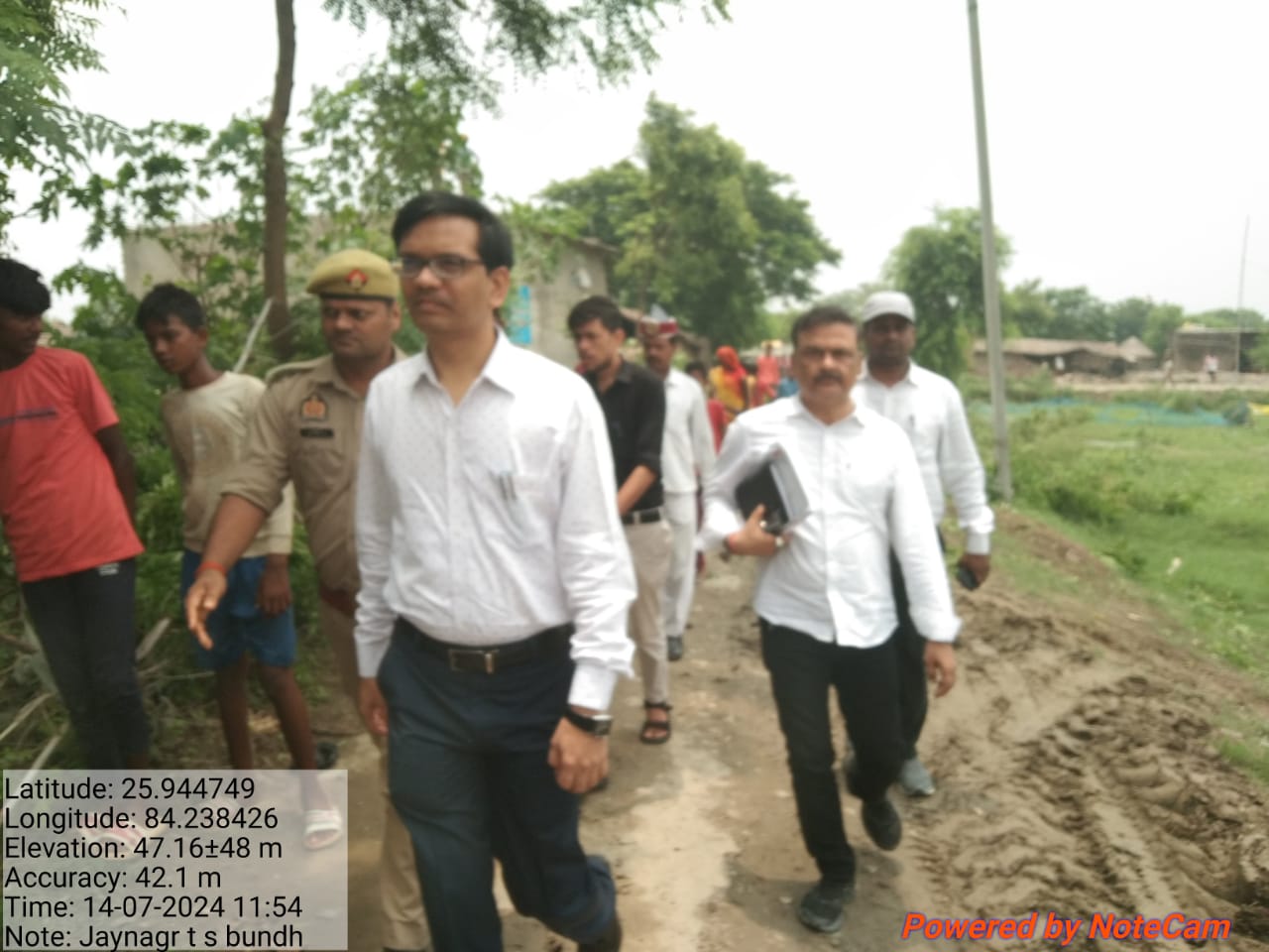 कटान के लिहाज से लोगों की मदद के लिए हमेशा तत्पर रहने का निर्देश एसडीएम-तहसीलदार व लेखपाल को दिया। कहा कि जिनके घर नहीं है या जिनके यहां पानी आ गया है, उन्हें बाढ़ शरणालय में सुरक्षित ले जाएं। डीएम सबसे पहले नदी किनारे पहुँचे और नदी के रूख का जायजा लिया। इसके बाद तटवर्ती लोगों से बातचीत किया। मौके पर मौजूद लेखपाल से पूछताछ कर कटान प्रभावित जमीन के बारे में जानकारी ली। कहा कि हमेशा हर स्थिति पर नजर बनाए रखें। बाढ़ खंड के अभियंताओं को निर्देश दिया कि बंधे पर लगातार निगरानी रखें।