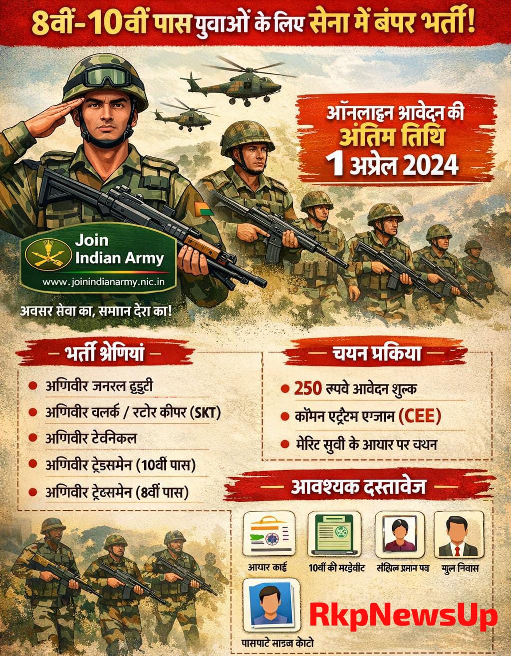 1 अप्रैल तक करें आवेदन: 8वीं–10वीं पास युवाओं के लिए सेना में बंपर भर्ती