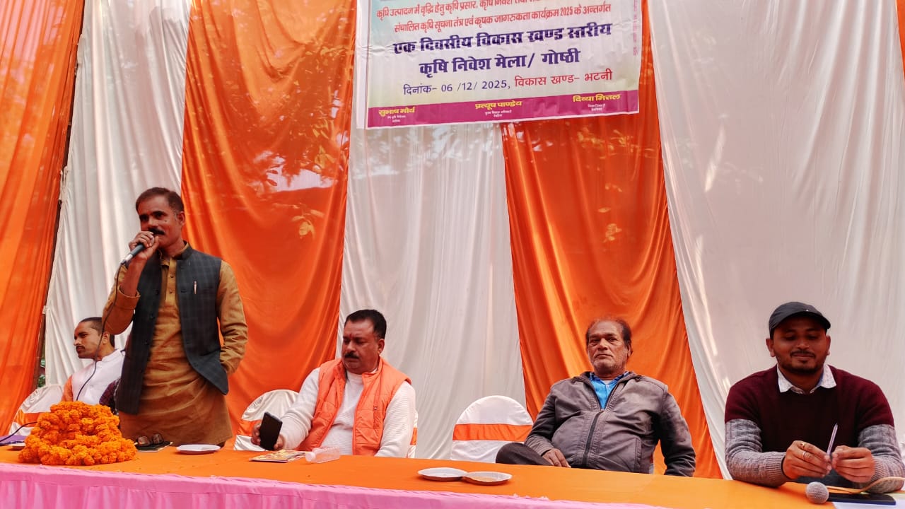भटनी/देवरिया(राष्ट्र की परम्परा)। कृषि उत्पादन में वृद्धि तथा किसानों को नवीन तकनीक व सरकारी योजनाओं की जानकारी देने के उद्देश्य से विकास खंड भटनी प्रांगण में एक दिवसीय कृषि निवेश मेला/गोष्ठी का आयोजन किया गया। यह कार्यक्रम कृषि सूचना तंत्र एवं कृषक जागरूकता कार्यक्रम 2025 के तहत आयोजित हुआ।