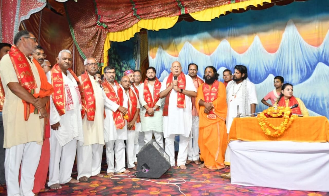बघौचघाट/देवरिया (राष्ट्र की परम्परा)। पथरदेवा क्षेत्र स्थित सुंदरपुर में त्यागी बाबा गौ सेवा संस्थान के तत्वाधान में नौ दिवसीय श्रीराम महायज्ञ और सतचंडी महायज्ञ का आयोजन चल रहा है।महायज्ञ के चौथे दिन शनिवार शाम को प्रदेश कृषि मंत्री सूर्य प्रताप शाही पहुंचकर अमृत कथा का श्रवण किया। श्रीधाम वृंदावन से पधारी कथा वाचक पूज्या दीप्ती श्री जी ने अमृत कथा का रसपान कराया।इस भीषण गर्मी के बावजूद हजारों श्रद्धालुओं ने कथा में भाग लिया। कथावाचक पूज्या दीप्ति श्री जी ने अमृतकथा का रसपान कराते हुए कहा कि जब जब धर्म की हानि होती है ,और अधर्म बढ़ता है।तब धर्म की स्थापना के लिए भगवान मनुज रूप मे आकार गौ, संत, ब्राह्मण ओर भक्तों पर कृपा करते हैं।यज्ञ समिति के अध्यक्ष युगल किशोर तिवारी एवं सह संचालक आचार्य राजेश कुमार मिश्रा की देखरेख में यह लोककल्याण हेतु महायज्ञ चल रहा है। कार्यक्रम में वृंदावन धाम से पधारे कलाकारों द्वारा बांके बिहारी रासलीला एवं रामलीला का मंचन किया जा रहा है।इस दौरान युगूल किशोर तिवारी,विनोद सिंह कुशवाहा,मंडल अध्यक्ष हरीश उर्फ जिप्पू शाही, जिपंस सुजीत प्रताप सिंह,चेयरमैन क्रांति सिंह,विवेक राय,कन्हैया यादव,सरोज मिश्र,कुंवर राय,रामायण साहनी, अनिल प्रसाद,प्रेमचंद्र कुशवाहा,दिनेश शर्मा, दीपक मिश्रा,रवीश तिवारी,जितेंद्र यादव, राजकुमार कुशवाहा,व्यास ठाकुर,शंभू मिश्रा,आलोक राय,सुरेंद्र यादव,विजय दास कुशवाहा,धर्मेन्द्र कुशवाहा समेत क्षेत्रीय श्रद्धालु मौजूद रहे।