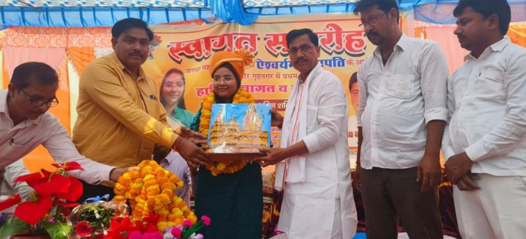 महराजगंज(राष्ट्र की परम्परा)।बृजमनगंज ब्लाक क्षेत्र के ग्राम सभा मैंनहवां टोला मंझरियां निवासिनी ऐश्वर्यम प्रजापति का आई एस में चयन होने पर क्षेत्र में प्रथम आगमन पर जनता का उमड़ा जनसैलाब। बृजमनगंज कोल्हुई मार्ग के सोनाबंदी चौराहे पर फरेंदा विधान सभा के पूर्व विधायक बजरंग बहादुर सिंह ने अपने समर्थकों के साथ ऐश्वर्यम प्रजापति का जोरदार स्वागत किया। सिंह ने कहा कि हमारे क्षेत्र की बेटी ने अपने परिवार के साथ फरेंदा तहसील व जिले का नाम रोशन किया है हम उसके उज्जवल भविष्य की कामना करते हैं। इस दौरान बृजमनगंज नगर पंचायत के चेयरमैन राकेश जायसवाल,ब्लाक प्रमुख उदयराज यादव, राम शिला चौहान,बबलू चौरसिया,ग्राम सभा मैंनहवां के प्रधान प्रतिनिधि रमेश सिंह, राजू जायसवाल, बालमुकुंद जायसवाल उर्फ गुड्डू ,बबलू श्रीवास्तव, संदीप शर्मा, राजू वर्मा,राजकुमार शर्मा, हरिनारायण आजाद, डाॅ शिव नारायण आजाद, हेमंत कुमार, समाजसेवी शाकिर अली उर्फ सेठ, सहदेव यादव,सर्वेश मौर्या,कमाल अहमद सिद्दीकी,जलाल अहमद सिद्दीकी,मो इब्राहिम चौकीदार मैनहवां के साथ क्षेत्र के लोग मौजूद रहें।