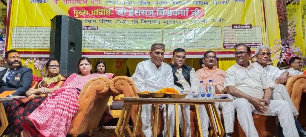 सहायक निबंधक पीसीएफ राकेश शर्मा ने कहा कि हमे अपने इतिहास के बारे में गहनता से अध्ययन करने की जरूरत है। इसके साथ ही युद्ध स्तर पर जागरूकता अभियान चलाना होगा। कार्यक्रम का शुभारंभ भगवान विश्वकर्मा के चित्र पर माल्यार्पण कर व विश्वकर्मा पूजन के साथ हुआ। इस दौरान लोक कलाकारों ने रंगारंग प्रस्तुति कर जागरूक भी किया। इस दौरान पूर्व मंत्री कृष्ण मुरारी वर्मा, महराजगंज के सदर विधायक जयमंगल कन्नौजिया, ब्लाक प्रमुख परतावल आनंद प्रकाश वर्मा, अखिल भारतीय विश्वकर्मा महासभा के राष्ट्रीय सचिव महाशय शर्मा, नगर पंचायत पीपीगंज चेयरमैन लक्ष्मण विश्वकर्मा, रामप्यारे, भाजपा के पूर्व जिलाध्यक्ष परदेशी रविदास ने भी संबोधित किया। इस दौरान महराजगंज के जिलाध्यक्ष अनिरूद्ध वर्मा, महामंत्री अनिल वर्मा, जिला संयोजक अशोक वर्मा, नगर अध्यक्ष राजेश्वर वर्मा, जिला प्रचारक राजेन्द्र प्रसाद वर्मा, अच्छे लाल विश्वकर्मा आदि लोग मौजूद रहे, जबकि कार्यक्रम का सफल