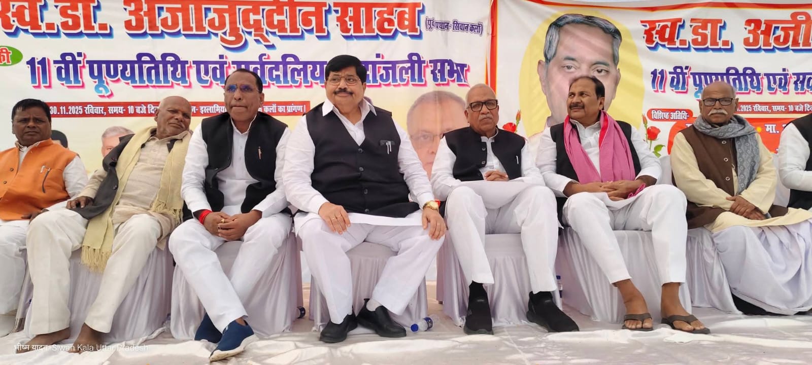 सिवानकला गांव में रविवार को पूर्व प्रधान डॉ. अजीजुद्दीन की 11वीं पुण्यतिथि पर सर्वदलीय श्रद्धांजलि सभा आयोजित की गई, जिसमें सैकड़ों ग्रामीणों, जनप्रतिनिधियों और विभिन्न दलों के नेताओं ने भाग लेकर उन्हें श्रद्धांजलि अर्पित की। कार्यक्रम का आयोजन उनके अनुज एवं क्षेत्रीय विधायक मो. जियाउद्दीन रिजवी ने प्राथमिक विद्यालय परिसर में किया।