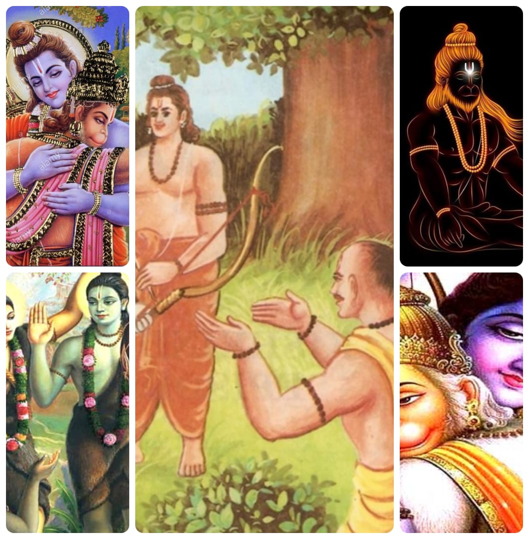 हनुमान ने ब्राह्मण-वेष धारण कर दोनों भाइयों का सम्मानपूर्वक स्वागत किया। जैसे ही श्रीराम ने पहली बार हनुमान का वदन देखा, वे लक्ष्मण से बोले—