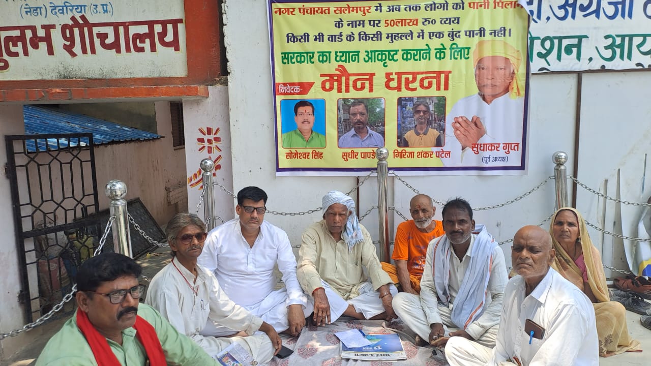 सलेमपुर/देवरिया (राष्ट्र की परम्परा)। नगर पंचायत सलेमपुर में करीब करोड़ो रूपये खर्च करने के बाद भी पूरे नगर में नगर वासियों को अब तक एक बूंद पानी नसीब नही हो सका है। उक्त बातें तहसील कार्यालय के सामने आयोजित एक दिवसीय मौन धरना के दौरान मण्डलायुक्त के नाम सम्बोधित पत्रक उपजिलाधिकारी सलेमपुर दिशा श्रीवास्तव को सौंपते हुए उद्योग व्यापार मण्डल के जिला उपाध्यक्ष व नगर पंचायत के पूर्व अध्यक्ष सुधाकर गुप्त ने कहा। उन्होंने कहा कि जुलाई 2022 के बाद इस समय तक नगर पंचायत के 10 वार्डो में करीब 90 लाख रुपये खर्च हुए,लेकिन आज तक एक भी वार्ड में किसी भी टोंटी से एक बूंद पानी नगरवासियों को नही मिला। जब भी ट्यूबवेल चालू किया जाता है तो कहीं न कहीं पाइप लाइन लीकेज कर जाता है।इस समय भयंकर गर्मी पड़ रहा है लेकिन नगर में अधिकांश इंडिया मार्का हैंडपंप व वाटर कूलर खराब हो गए हैं जिसके कारण मजबूरी में लोग अशुद्ध जल पीने को मजबूर हैं। अगर 20 दिन के अंदर इस घोटाले की जांच के साथ ही पानी सप्लाई शुरू नही किया गया तो हम नगरवासियों को मजबूर होकर पुनः धरना प्रदर्शन करने को बाध्य होंगे। मौन धरना में सोमेश्वर सिंह पूर्वांचल, परमानंद प्रसाद,गिरिजाशंकर पटेल,बहादुर प्रसाद,रामनक्षत्र कुशवाहा, जयप्रकाश गुप्त, सुभावती देवी,अनिल यादव, सम्पति प्रसाद,सोमेश्वर श्रीवास्तव प्रमुख रूप से शामिल हुए।
