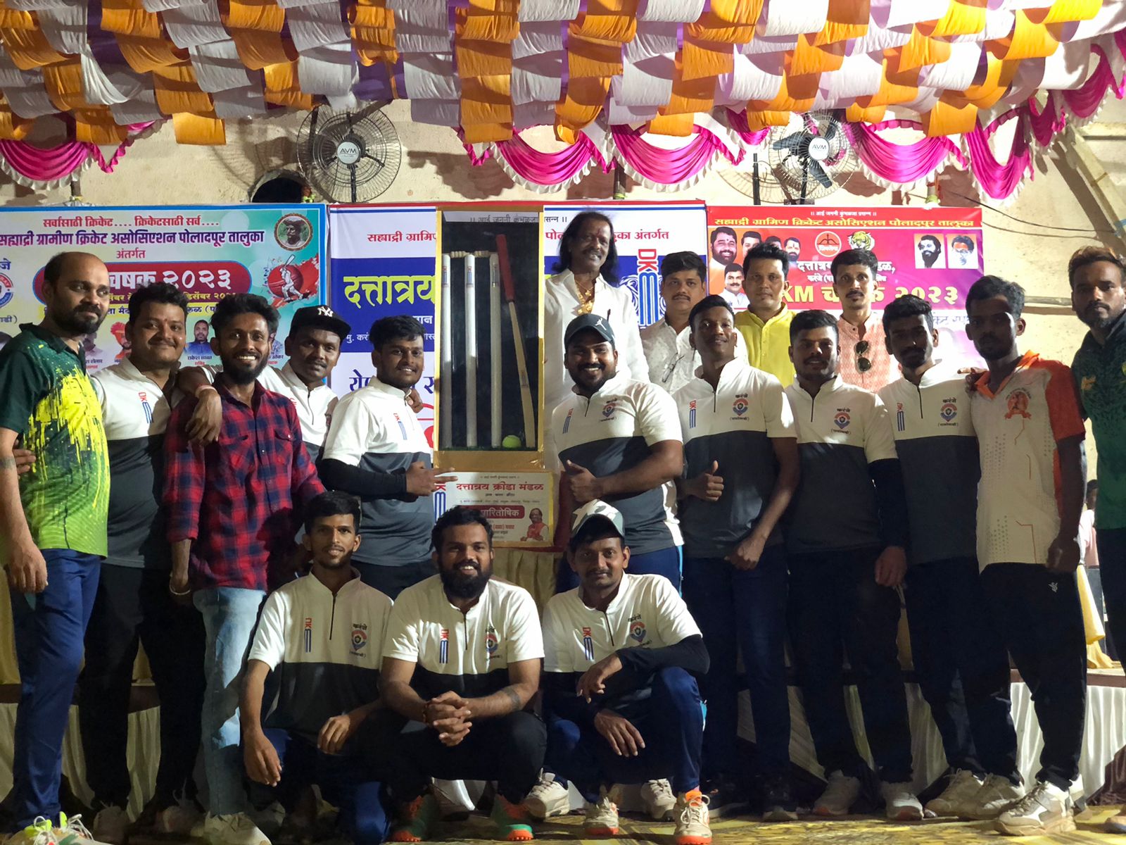 नवी मुंबई के नेरुल सारसोले में आयोजित डीकेएम कप 2023 टेनिस बॉल ओवर आर्म क्रिकेट टूर्नामेंट, में अनिकेत भाऊ ११ ऊंबरकोड टीम विजेता हुई । विजयी टीम को 33333 रुपये का चेक और एक आकर्षक ट्रॉफी प्रदान की गई,जबकि उपविजेता कालकाई स्पोर्ट्स क्लब पीतलवाड़ी टीम को 22222 रुपये का चेक और एक ट्रॉफी प्रदान की गई। वहीं आई जननी माता चरई टीम तीसरी स्थान पर और कांगोरीगढ़ 11 सडेकोड टीम को चौथे स्थान पर रहीं। इन दोनों ही टीमों को 8888 रुपए का धनादेश व ट्रॉफी दी गई।सह्याद्री ग्रामीण क्रिकेट एसोसिएशन पोलादपुर के अंतर्गत टेनिस क्रिकेट ओवरआर्म प्रतियोगिता का आयोजन दत्तात्रेय स्पोर्ट्स क्लब करंजे पायटेवाडी द्वारा किया गया। इस टूर्नामेंट का उद्घाटन समारोह गुरुवर्य दशरथ पवार, उद्योजक राम रींगे, सामाजिक कार्यकर्ता सोनू पवार, सह्याद्री ग्रामीण क्रिकेट एसोसिएशन के अध्यक्ष चंद्रकांत मोरे, अमित घाडगे की उपस्थिति में बड़े उत्साह के साथ आयोजित किया गया। इस टूर्नामेंट में 32 क्रिकेट टीमों ने भाग लिया। नॉकआउट राउंड में विशेष चार टीमों को दिवंगत संतोष पानसे की स्मृति में टी-शर्ट दी गई। इस टूर्नामेंट में सर्वश्रेष्ठ क्षेत्ररक्षक सूरज पार्टे (उंबरकोड), सर्वश्रेष्ठ गेंदबाज राज विसापुरकर (पितलवाडी) 7 विकेट, सर्वश्रेष्ठ बल्लेबाज निखिल सकपाल (उंबरकोड) 67 रन, सीरीज के हीरो सचिन सालेकर (सडेकोंड) 97 रन बना कर मैदान डटे रहे।