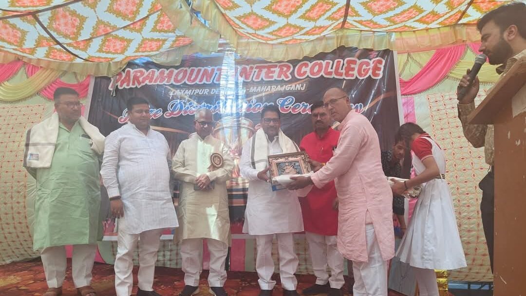 महराजगंज(राष्ट्र की परम्परा)। सदर तहसील के लक्ष्मीपुर देउरवां स्थित पैरामाउंट इंटर कॉलेज में वार्षिक परीक्षा परिणाम, पुरस्कार वितरण एवं विज्ञान प्रदर्शनी का आयोजन किया गया। कार्यक्रम में बतौर मुख्य अतिथि पनियरा विधायक ज्ञानेन्द्र सिंह पनियरा ब्लाक प्रमुख वेद प्रकाश शुक्ला एवं घुघली ब्लॉक प्रमुख प्रतिनिधि ओम प्रकाश जायसवाल उपस्थित रहें। मुख्य अतिथियों ने मां सरस्वती की प्रतिमा के समक्ष दीप प्रज्वलित कर कार्यक्रम का शुभारंभ किया। इस मौके पर स्कूली बच्चों ने रंगारंग सांस्कृतिक कार्यक्रम भी प्रस्तुत किये। कक्षा में प्रथम, द्वितीय तृतीय व अन्य गतिविधियों में स्थान प्राप्त करने वाले विद्यार्थियों को प्रशस्ति पत्र व मेडल देकर सम्मानित किया गया। विज्ञान प्रदर्शनी में छात्र -छात्राओं ने रेन वाटर हार्वेस्टिंग,ग्रीन हाउस,सोलर सिटी,माइक्रोस्कोप, कुलर,डी सी मोटरकार, रोबोट,वाटर राकेट, मोटरकार, पवन ऊर्जा,ओजोन संरक्षण, स्मार्ट सिटी, जल संरक्षण, वायु प्रदूषण रोकथाम, कम्पोजर द्वारा पराली नियंत्रण, अत्याधुनिक अस्पताल, प्रदर्शनी लगाई जिसका निरीक्षण मुख्य अतिथियों द्वारा किया गया। छात्र छात्राओं का हौसला अफजाई करते हुए पनियरा विधायक ने अपने उद्बोधन में कहा कि ग्रामीण क्षेत्रों में प्रतिभा की कोई कमी नहीं है सभी छात्र- छात्राओं को अपने अंदर प्रतियोगिता की भावना पैदा करनी होगी और अनुशासन में रहते हुए ही लक्ष्य को प्राप्त किया जा सकता है l ब्लॉक प्रमुख वेद प्रकाश शुक्ल ने कहा कि वैज्ञानिकों के बल पर ही भारत विकसित राष्ट्र बनेगा वहीं छात्र-छात्राओं एवं उपस्थित अभिभावकों को संबोधित करते हुए घुघली ब्लाक प्रमुख प्रतिनिधि ओम प्रकाश जायसवाल ने विद्यार्थियों को मन लगाकर पढ़ने के लिए प्रेरित करते हुए कहा कि बच्चों को अच्छा नागरिक बनाने में माता-पिता के बाद शिक्षण संस्थानों का अहम योगदान होता है l प्रबंधक बृजेश कुमार पाण्डेय व प्रधानाचार्य नवीन कुमार पाण्डेय ने अतिथियों को अंग वस्त्र देकर सम्मानित कर उनके प्रति आभार ज्ञापित किया। इस दौरान संजय मणि, चंद्रहास सहित समस्त छात्र -छात्राएं एवं अभिभावक मौजूद रहें।