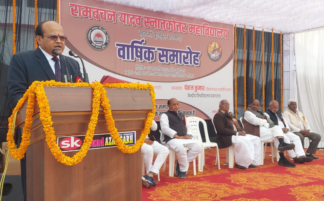 रामबचन यादव स्नातकोत्तर महाविद्यालय, खुरासों, फूलपुर, आजमगढ़ में वार्षिक समारोह सफलता पूर्वक सम्पन्न हुआ। वार्षिक समारोह के मुख्य अतिथि महाराजा सुहेलदेव विश्वविद्यालय आजमगढ़ के, कुलपति प्रोफेसर प्रदीप कुमार शर्मा ने मां सरस्वती के चित्र पर माल्यार्पण व दीप प्रज्वलन कर कार्यक्रम का शुभारंभ किया। समारोह की अध्यक्षता पूर्वमंत्री बलराम यादव तथा विशिष्ट अतिथि दुर्गा प्रसाद यादव रहे। पूर्वमंत्री रामदुलार राजभर, विधायक अखिलेश यादव, विधायक कमलाकांत राजभर, विधायक बेचई सरोज व क्षेत्र के सभी महाविद्यालयों के प्रबंधक प्राचार्य गण, अभिभावक गण, समाजवादी पार्टी के नेता कार्यकर्ता गण तथा हजारों छात्र छात्राओं ने समारोह में भाग लिया। महाविद्यालय के छात्र छात्राओं ने सुन्दर मनमोहक प्रस्तुति से कार्यक्रम मे समां बांध दिया। वर्तमान सामयिक व प्रेरणादायक कार्यक्रमो ने बच्चों को बहुत प्रभावित किया। मुख्य अतिथि कुलपति ने, महाविद्यालय के सभी संकाय के टॉपर बच्चों को मोमेन्टो व सर्टिफिकेट देकर सम्मानित किया।अपने सम्बोधन में कुलपति प्रोफेसर शर्मा ने, जहां महाविद्यालय के अनुशासन साफ सफाई शैक्षिक माहौल तथा कैंपस की अवस्थापना सुविधाओं की प्रशंसा की, वहीं पर शिक्षकों को अच्छी शिक्षा देने तथा बच्चों के चहुंमुखी विकास के लिए अनेकानेक रोजगारपरक पाठ्यक्रम व कार्यक्रम चलाने की भी बात कही।सरकार की नयी शिक्षा नीति के तहत बच्चों में रोजगारपरक शिक्षा देने और महाविद्यालय में कौशल विकास पाठ्यक्रमों को चलाने पर ज्यादा जोर दिया, ताकि ज्यादा से ज्यादा बच्चों को रोजगार दिया जा सके। महाविद्यालय के प्रबंधक पूर्वमंत्री रामआसरे विश्वकर्मा ने अतिथियों का स्वागत किया तथा क्षेत्र के नागरिकों का भी कार्यक्रम में आने का आभार प्रकट किया। पूर्वमंत्री बलराम यादव, पूर्वमंत्री दुर्गा प्रसाद यादव ने भी अपने विचार व्यक्त किए ।