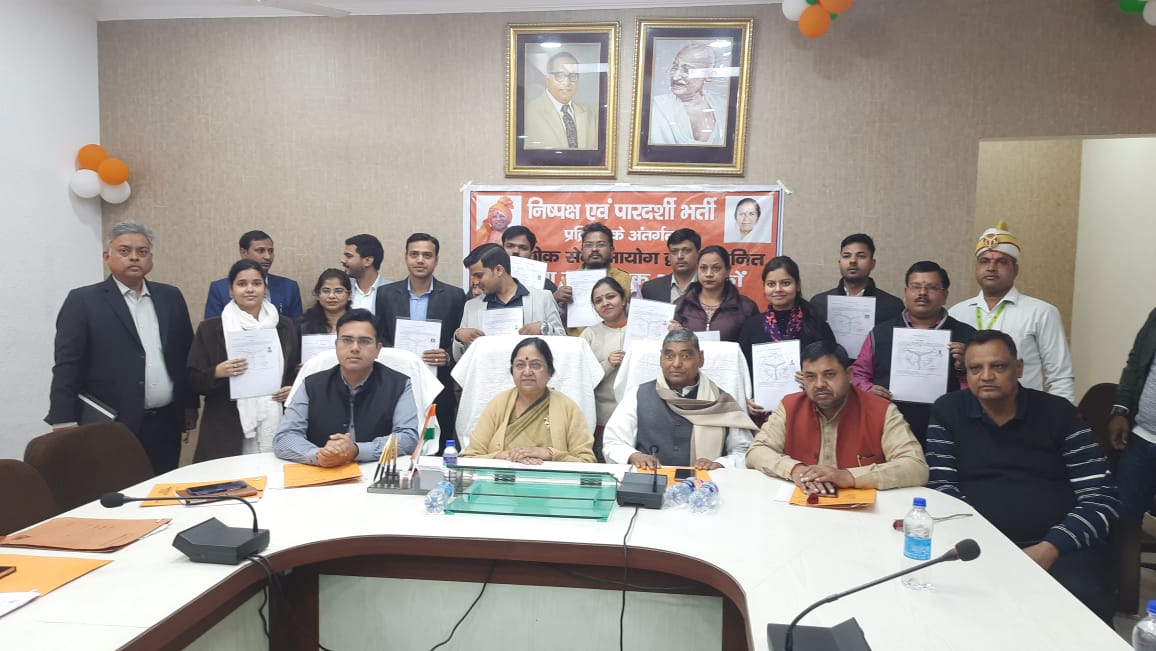 जिलाधिकारी नवनीत सिंह चहल की अध्यक्षता में व मंत्री बेबीरानी मौर्य एवं विधायक एत्मादपुर डा0 धर्मपाल सिंह, विधायक फतेहाबाद छोटेलाल वर्मा, विधायक खेरागढ़ भगवान सिंह कुशवाह, की गरिमामयी उपस्थिति में जनपद के लिए 02 सहायक अध्यापक व 13 प्रवक्ताओं को कलेक्ट्रट सभागार में नियुक्ति पत्र प्रदान किए गए। निष्पक्ष एवं पारदर्शी चयन की भर्ती प्रक्रिया के अंतर्गत उत्तर प्रदेश लोक सेवा आयोग द्वारा 75 जनपदों के, लिए चयनित 1395 सहायक अध्यापक व प्रवक्ताओं को, नियुक्ति पत्र का वितरण योगी आदित्यनाथ मुख्यमंत्री उत्तर प्रदेश द्वारा राज्यमंत्री स्वतंत्र प्रभार माध्यमिक शिक्षा, गुलाब देवी की गरिमामयी उपस्थिति में लोक भवन सभागार में किया गया, जिसका वर्चुअल प्रसारण कलेक्ट्रेट सभागार में हुआ। इसी क्रम में जनपद आगरा हेतु 02 सहायक अध्यापक व 13 प्रवक्ताओं को नियुक्ति पत्र, जिलाधिकारी नवनीत सिंह चहल तथा श्रीमती बेबीरानी मौर्य एवं विधायक एत्मादपुर डा0 धर्मपाल सिंह, विधायक फतेहाबाद छोटेलाल वर्मा, विधायक खेरागढ़ भगवान सिंह कुशवाह द्वारा प्रदान किया गया। जिलाधिकारी ने बताया कि, जनपद में 02 सहायक अध्यापक व 13 प्रवक्ताओं को सेवा मिलेगी, जिससे जनपद में शिक्षा क्षेत्र में सुविधाएं मिलने के साथ, उसकी गुणवत्ता में उल्लेखनीय सुधार होगा। उन्होंने उपस्थित सभी चयनित अध्यापकों को शुभकामनाएं देते हुए उनके उज्ज्वल भविष्य की कामना, के साथ पूर्ण मनोयोग से अपने कर्तव्य पालन करने को कहा। मंत्री बेबीरानी मौर्य ने नव नियुक्त माध्यमिक शिक्षकों को सम्बोधित करते हुए कहा कि, शिक्षा विभाग में सेवा करने का अवसर मिलना सौभाग्य का विषय है तथा उन्होंने मुख्यमंत्री का, भी निष्पक्ष एवं पारदर्शी चयन प्रक्रिया के माध्यम से शिक्षकों के, चयन हेतु आभार प्रगट किया। जिला विद्यालय निरीक्षक ने बताया कि, जल्द ही नव नियुक्त इन शिक्षकों को जनपद के विभिन्न विद्यालय व कालेजों में नियुक्ति प्रदान की जायेगी, जिससे जनपद में शिक्षा क्षेत्र में गुणवत्तापूर्ण सुधार, सुविधायें व विद्यालयों को सुचारू रूप से संचालित करने में मदद मिलेगी।