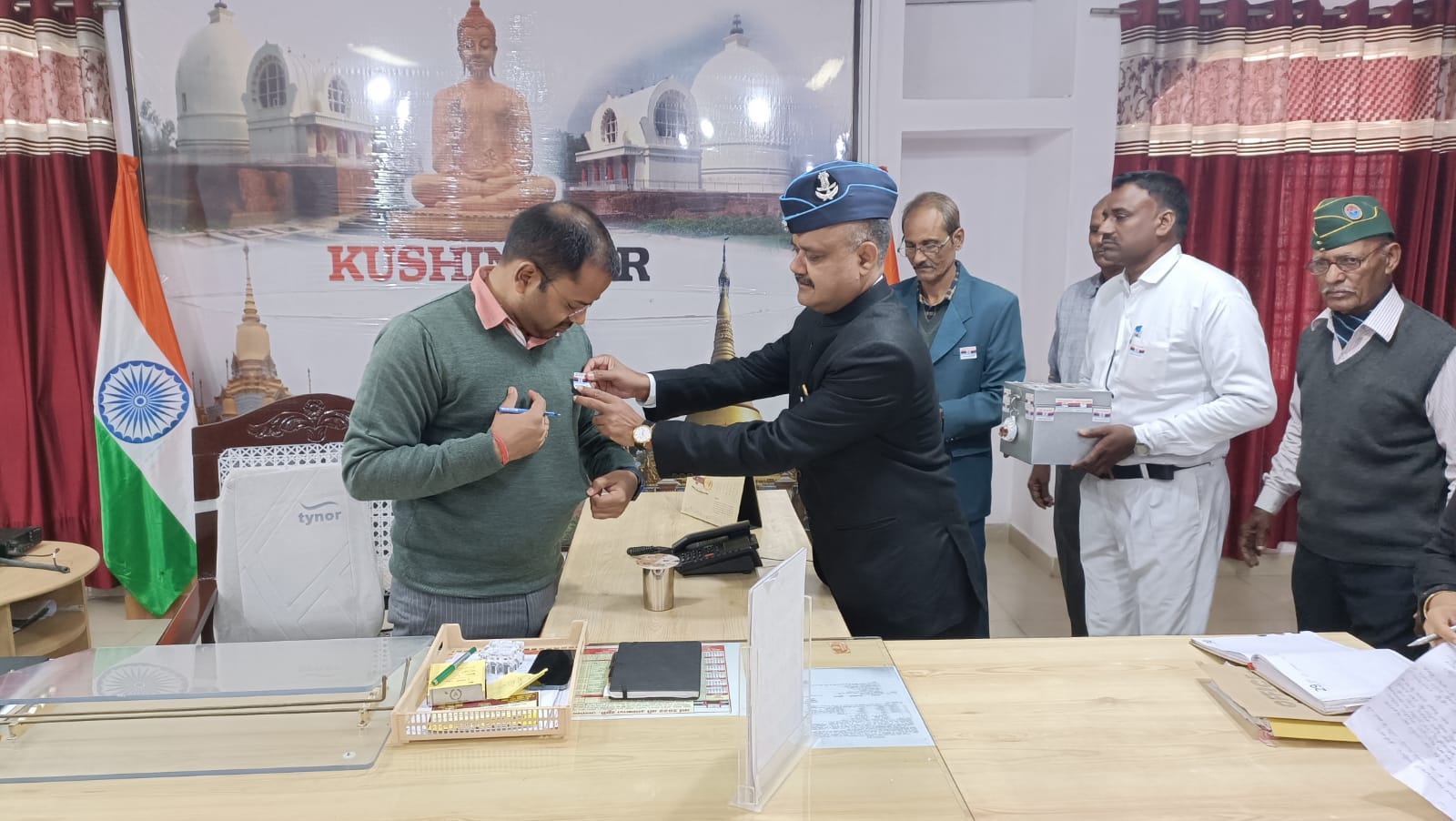 जनपद में सशस्त्र सेना झंडा दिवस के अवसर पर जिला सैनिक कल्याण एवं पुनर्वास अधिकारी तथा भूतपूर्व सैनिकों द्वारा, जनपद स्तरीय अधिकारीगण व विभागाध्यक्षों को झंडा स्टीकर लगाकर सशस्त्र सेना झंडा दिवस मनाया गया।