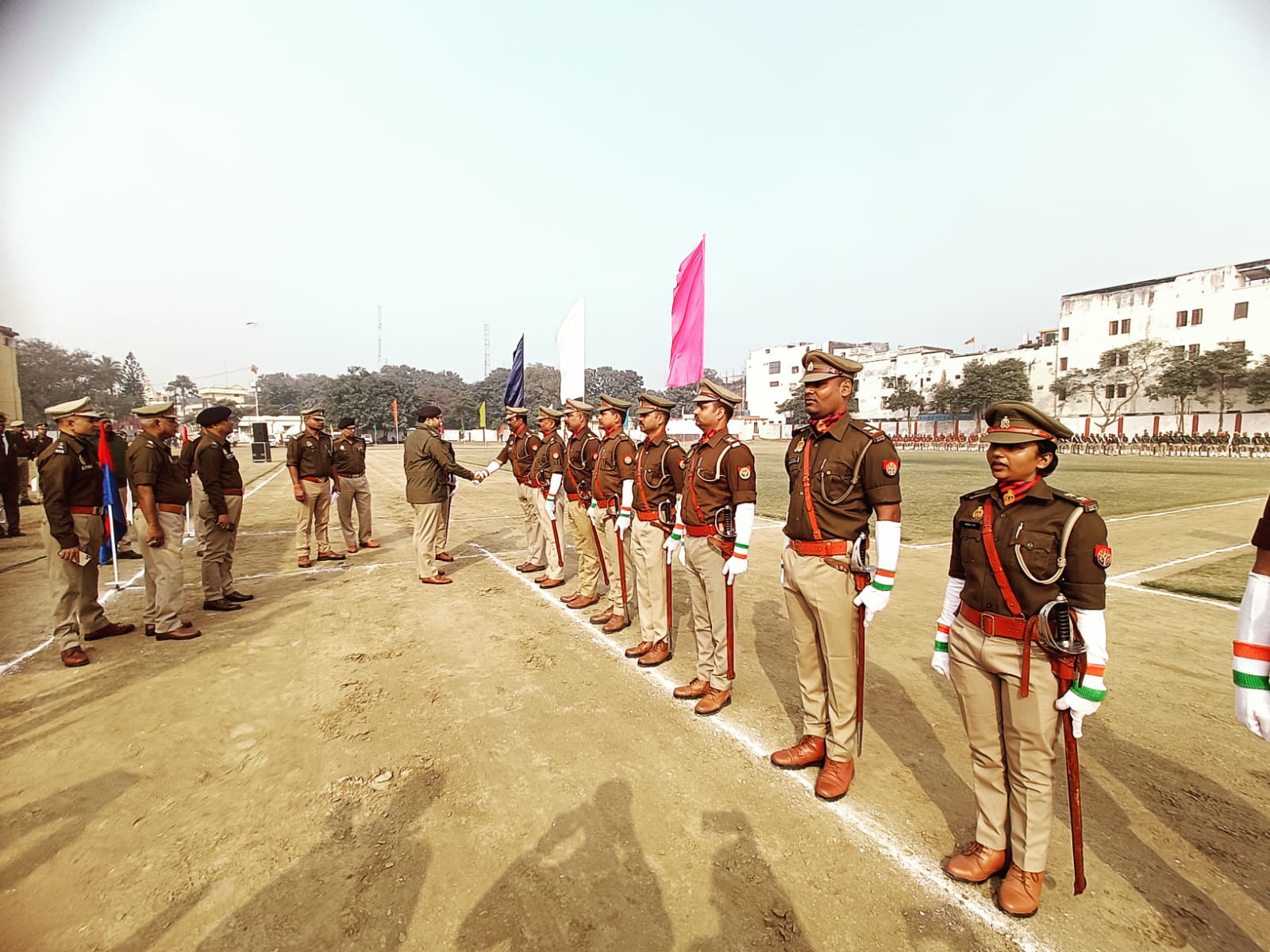 गणतंत्र दिवस से पूर्व फूल ड्रेस रिहर्सल परेड पुलिस लाइन परेड ग्राउंड पर परेड कमांडर/ सहायक पुलिस अधीक्षक, व मुख्य अतिथि वरिष्ठ पुलिस अधीक्षक डॉ गौरव ग्रोवर को परेड की सलामी दी। मंगलवार को मुख्य अतिथि, एसएसपी पासिंग आउट परेड में सम्मिलित हुए 11 डोलियों के 252 जवानों को संबोधित करते हुए आवश्यक दिशा निर्देश दिए। इस दौरान पुलिस अधीक्षक लाइन/ एसपी ट्रैफिक डॉ महेंद्र पाल सिंह, पुलिस अधीक्षक दक्षिणी अरुण कुमार सिंह,पुलिस अधीक्षक उत्तरी मनोज कुमार अवस्थी आर आई हरिशंकर सिंह रहे मौजूद।