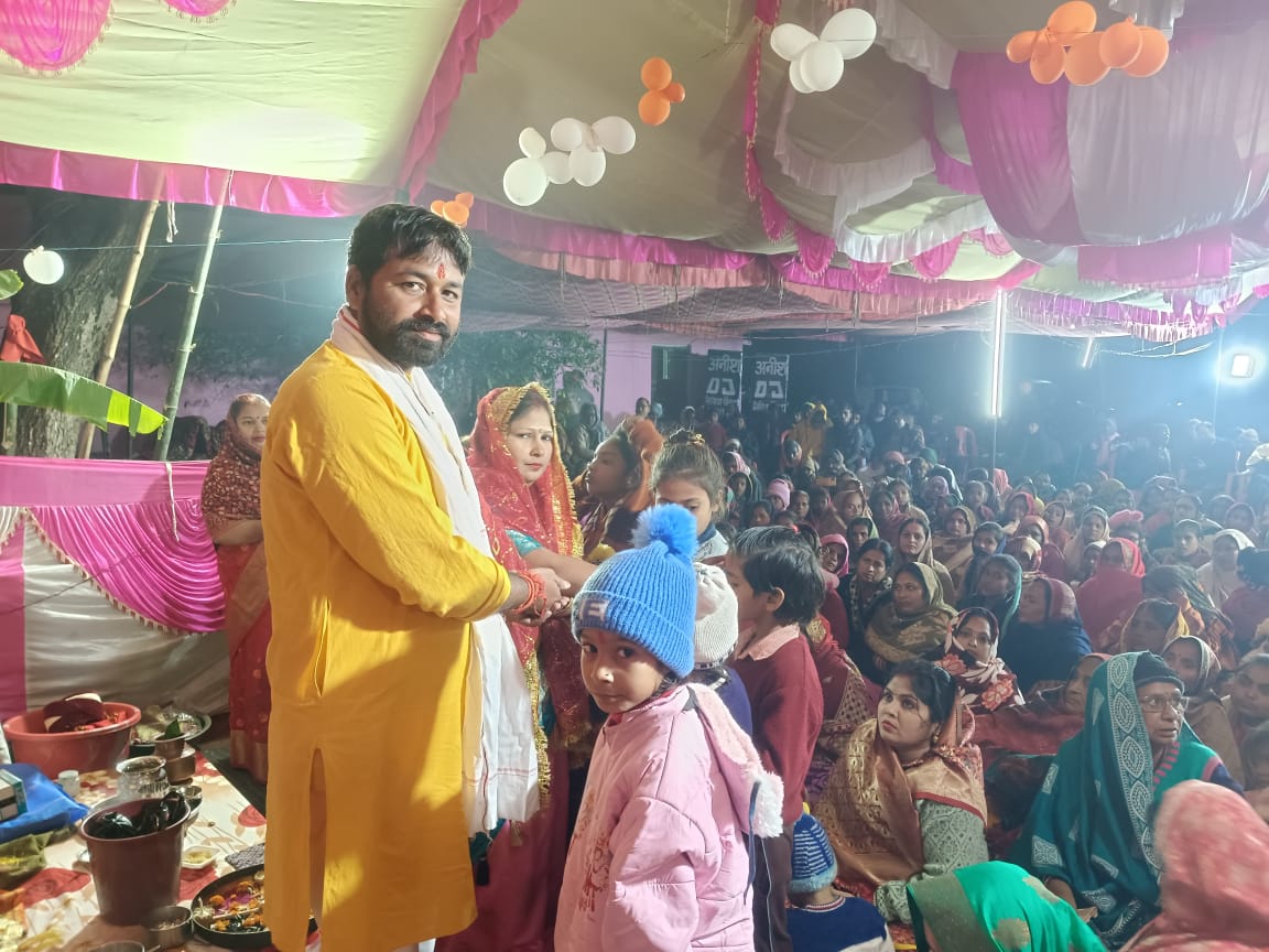 बहराइच (राष्ट्र की परम्परा) नौ दिवसीय श्रीमद्भागवत महापुराण कथा का आयोजन भक्ता पुर गुलरिया में हो रहे कथा समापन अवसर पर ब्लॉक नवाबगंज के ग्राम सभा भगता पुर गुलरिया में 17 दिसंबर से प्रारंभ हुए श्रीमद्भागवत महापुराण कथा का आयोजन प्रधान प्रतिनिधि आशीष पांडेय के यहां पर कथा वाचक लखीमपुर खीरी से आयें व्यासजी पन्डित जय प्रकाश पाठक व सहयोग में आचार्य अनुपम पाठक द्वारा आनंदमई कथा को सुनाते हुए कहा की हर भक्त के आत्मा में भगवान का निवास होता है और भगवान अपने भक्त के प्रेम के भाव से खुश रहते हैं।