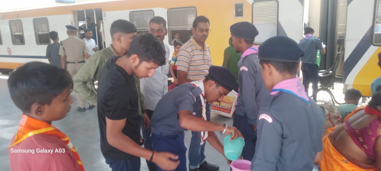 ग्रर्मी के दृष्टिगत पीने के पानी की उपलब्धता सुनिश्चित करने हेतु वाराणसी मड़ल के विभिन्न स्टेशनों पर भारत स्काउट एण्ड गाइड जिला संघ के सदस्यों द्वारा,शुक्रवार को मऊ जं रेलवे स्टेशन पर जनरल कोच के प्यासे यात्रियों को शीतल पीने का पानी उपलब्ध कराया गया। इस दौरान बच्चों ने जल सेवा के माध्यम से कोच तक पानी पहुँचाकर राहत पहुँचाई गयी।