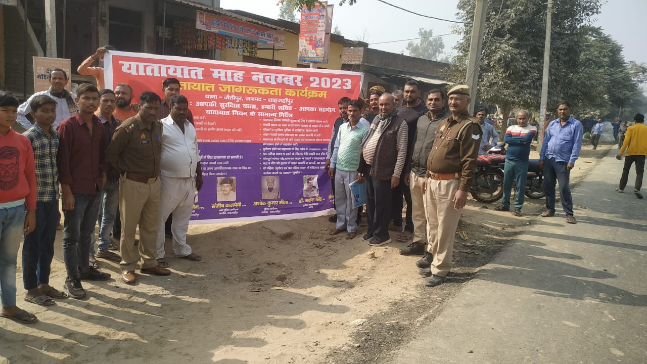 यातायात माह के तहत थाना प्रभारी अवधेश सिंह सेंगर द्वारा कस्बे में जागरूकता अभियान चलाया गया। उन्होंने लोगों को यातायात नियमों की जानकारी दी,साथ ही अपील करते हुए कहा कि सुुरक्षित यातायात के लिए यातायात नियमों का पालन करना जरूरी है। कहा बाइक चलाते समय हेलमेट का प्रयोग अवश्य करें, बाइक सवार के हेलमेट पहने होने से दुर्घटना के समय अधिकतर लोग बच जाते हैं। नशे में कोई भी वाहन न चलाएं। उन्होंने कहा यातायात नियमों का पालन कर खुद सुरक्षित रहने के साथ ही दूसरों को भी सुरक्षित रखा जा सकता है। अपने बच्चों को भी यातायात नियमों का पाठ पढ़ायें। सुरक्षित यातायात को लेकर सभी से सहयोग करने को कहा। इस दौरान रविंद्र गुप्ता,मदनपाल सिंह,बलराम सिंह,अंकित सिंह, शिव कुमार सिंह, प्रमोद तिवारी आदि लोग मौजूद रहे।