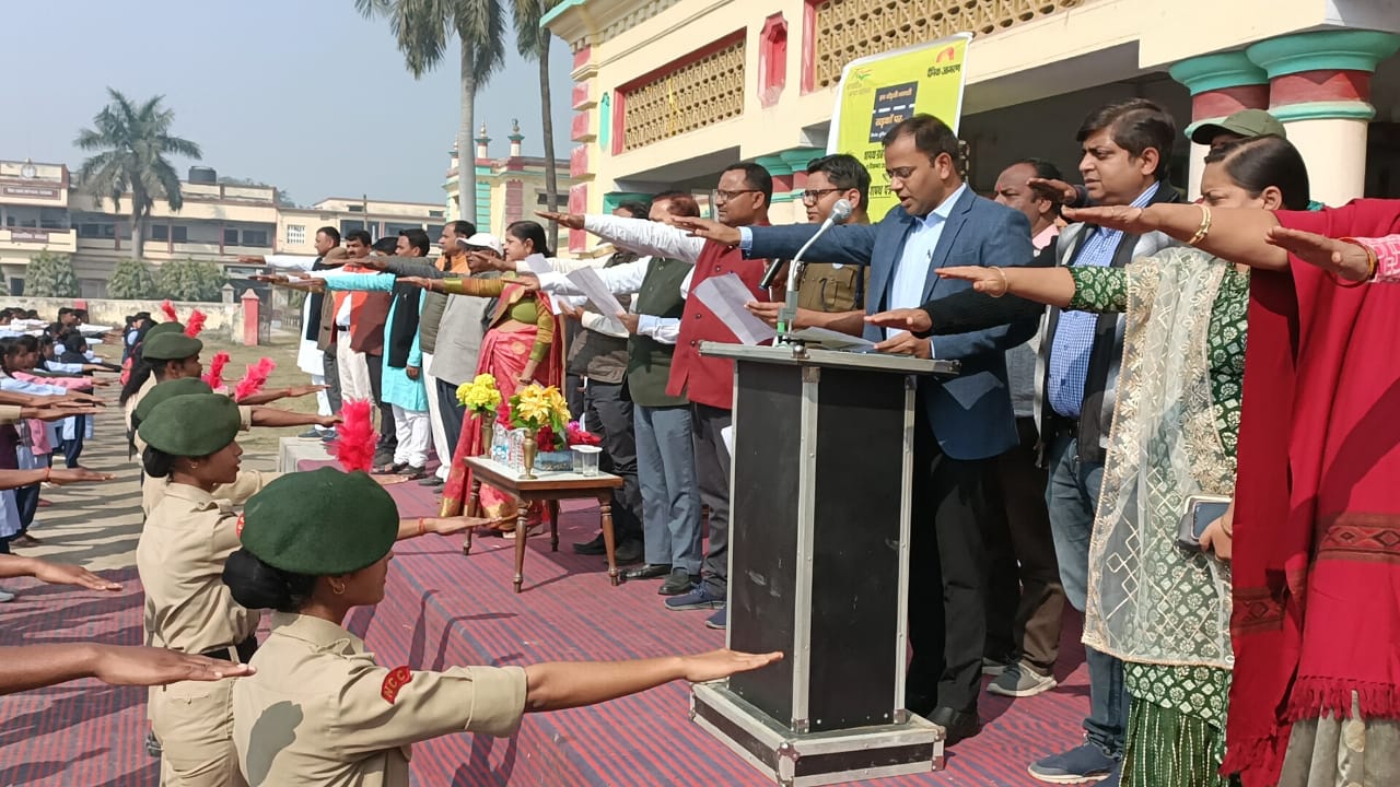 उक्त कार्यक्रम में जिलाधिकारी रमेश रंजन, पुलिस अधीक्षक धवल जायसवाल, अपर जिलाधिकारी देवीदयाल वर्मा, सहायक संभागीय परिवहन अधिकारी मोहम्मद अजीम ने उपस्थित छात्र-छात्राओं व व्यक्तियों को यातायात नियमों की शपथ दिलवाई।