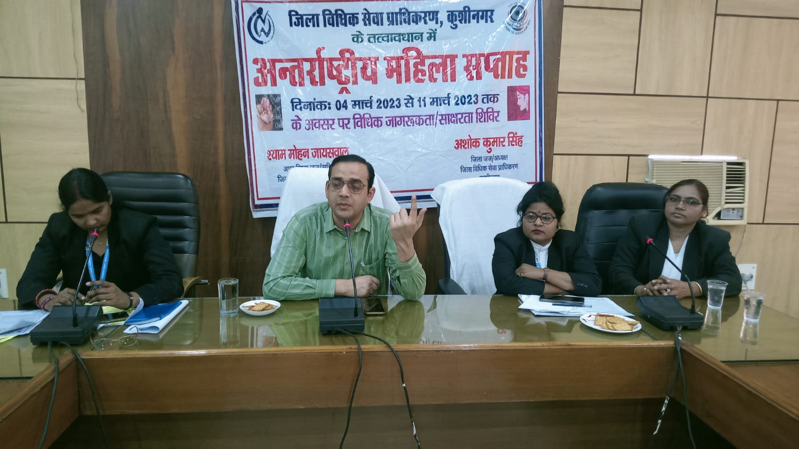 कुशीनगर(राष्ट्र की परम्परा)l विधिक सेवा प्राधिकरण कुशीनगर के सचिव, अपर जिला जज श्याम मोहन जायसवाल ने बताया कि उ०प्र० राज्य विधिक सेवा प्राधिकरण, लखनऊ के निर्देशानुसार 4 मार्च से 11 मार्च तक अन्तर्राष्ट्रीय महिला दिवस सप्ताह मनाया जा रहा है, जिसके क्रम में शुक्रवार को प्राधिकरण के तत्वावधान में महिला जागरूकता कार्यक्रम का आयोजन विकास भवन, कुशीनगर स्थान पडरौना के सभागार कक्ष में किया गया।