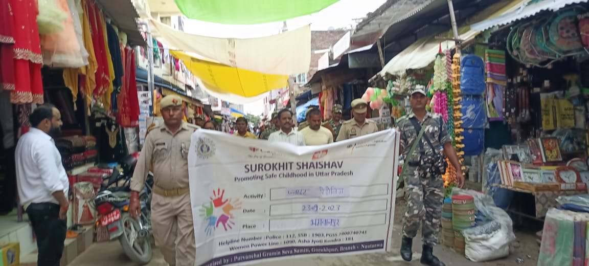 महराजगंज( राष्ट्र की परम्परा)l जिले के नौतनवा ब्लाक अंतर्गत ग्राम पंचायत भगवानपुर मे शनिवार को पूर्वांचल ग्रामीण सेवा समिति नौतनवा सुरोखित सेवा कार्यक्रम के अंतर्गत बाल श्रम, बाल तस्करी निषेध पर ज्वाइंट पेट्रोलिंग जागरूकता अभियान के तहत पुलिस और एसएसबी की संयुक्त टीम की मदद से ग्राम पंचायत के सभी टोले सहित कस्बे मे लोगो को जागरूक किया गया।