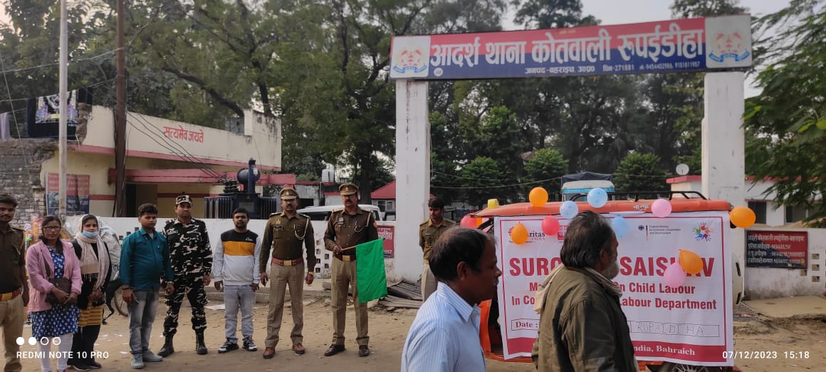 बहराइच (राष्ट्र की परम्परा) । भारत नेपाल सीमा पर देहात इन्डिया तथा जिला श्रम कार्यलय बहराइच के संयुक्त तत्वावधान में बालश्रम के विरुद्ध जन जागरूकता कार्यक्रम चलाया गया और सदस्यों ने जागरूकता रैली और पम्पलेट के द्वारा लोगों को बाल श्रम के प्रति जागरूक किया।