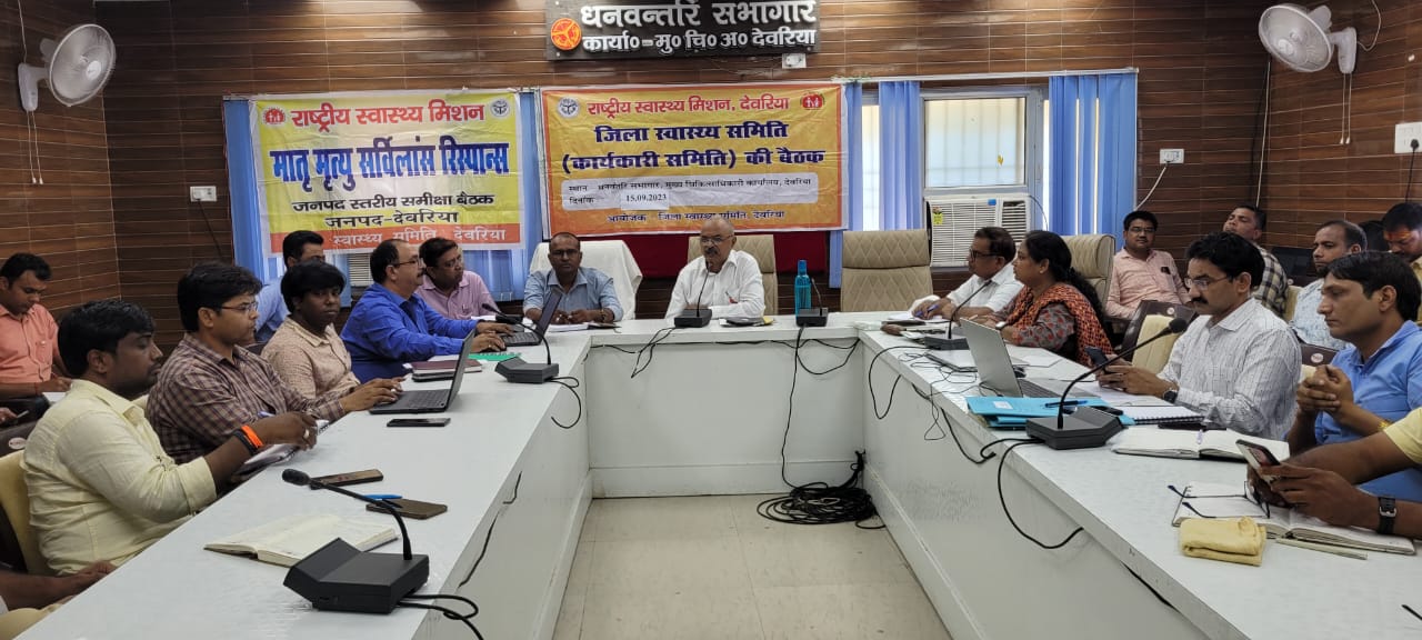 देवरिया(राष्ट्र की परम्परा)। जिला स्वास्थ्य समिति की बैठक शुक्रवार को सीएमओ कार्यालय के धनवंतरि सभागार में मुख्य चिकित्साधिकारी डॉ. राजेश झा की अध्यक्षता में हुई । बैठक में आयुष्मान भव: अभियान के तहत संचारी और गैर संचारी रोग, मातृ शिशु स्वास्थ्य सेवाएं सम्बंधित कार्यों पर चर्चा की गई। इसके साथ अभियान को सफल बनाने की कार्ययोजना तैयार की गई।
