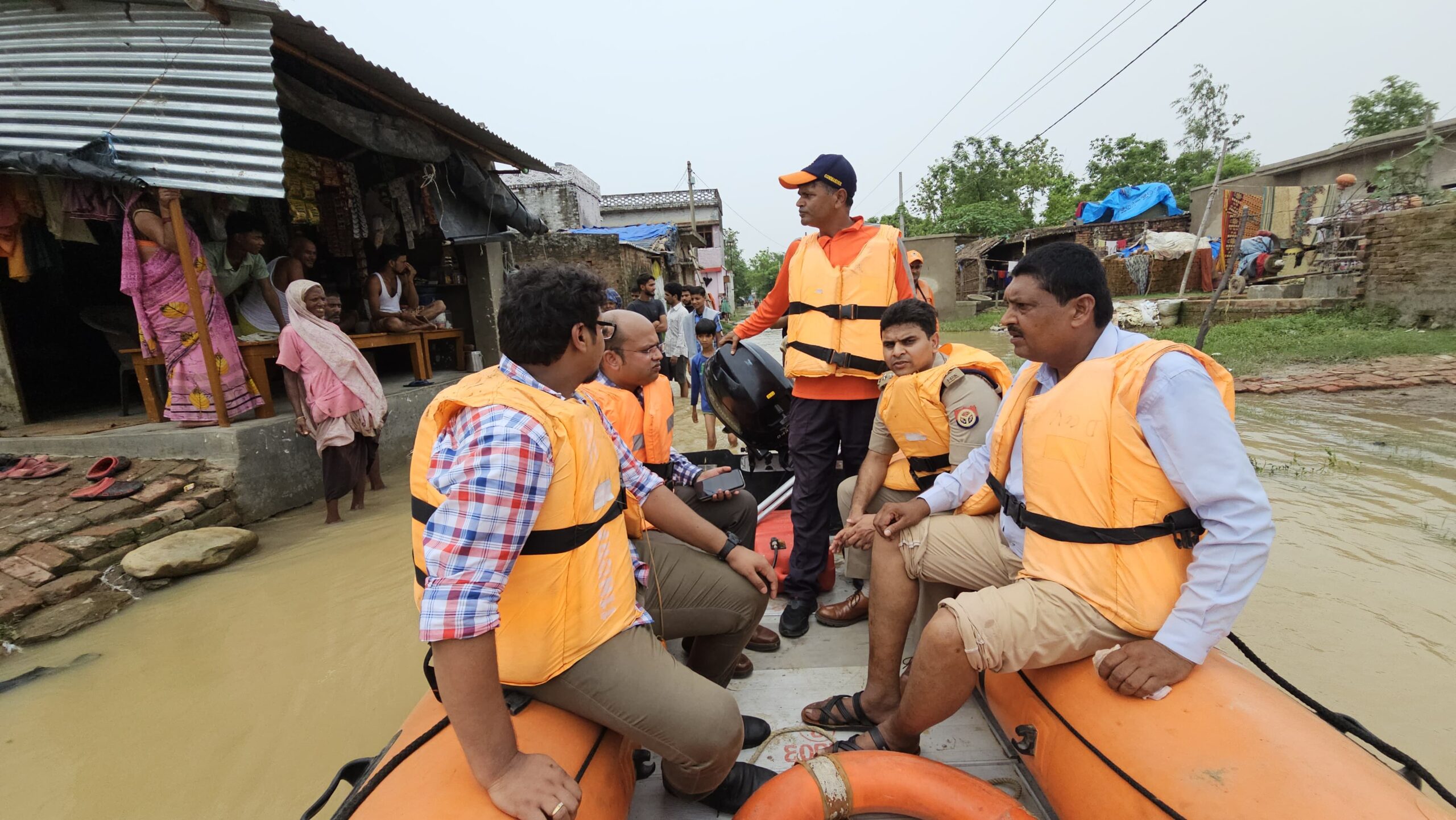 डीएम ने मोटर बोट से ग्राम में पहुंचकर बाढ़ प्रभावित परिवारों से वार्ता की एवं हर संभव मदद का वादा किया।