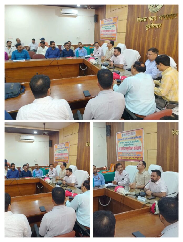 कुशीनगर (राष्ट्र की परम्परा)। उत्तर प्रदेश राज्य ग्रामीण आजीविका मिशन (UPSRLM) के तहत सोमवार को विकास भवन सभागार में एक दिवसीय बैंकर्स कार्यशाला का आयोजन किया गया। कार्यशाला की अध्यक्षता जिलाधिकारी महेंद्र सिंह तंवर ने की।कार्यक्रम का शुभारंभ जिलाधिकारी द्वारा दीप प्रज्वलित कर किया गया। इस अवसर पर उन्होंने कहा कि आजीविका मिशन के लक्ष्यों की पूर्ति के लिए बैंकिंग सहयोग अत्यंत आवश्यक है।