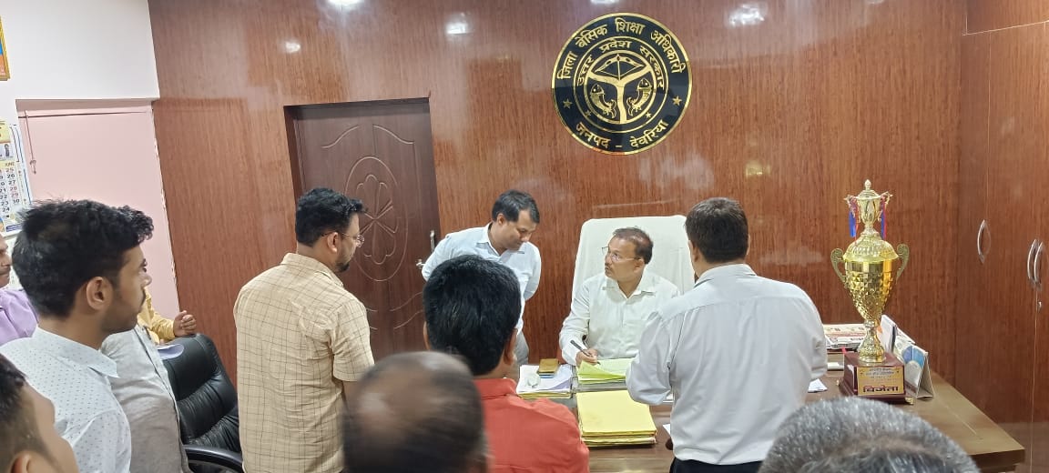 देवरिया (राष्ट्र की परम्परा)। मुख्य विकास अधिकारी रवींद्र कुमार द्वारा सोमवार को अपराह्न 03 बजे जिला बेसिक शिक्षा अधिकारी कार्यालय का औचक निरीक्षण किया गया। निरीक्षण के समय जिला बेसिक शिक्षा अधिकारी हरिश्चन्द्र नाथ अनुपस्थित पाये गये। कार्यलय में उपस्थित कर्मचारियों द्वारा बताया गया कि वे लखनऊ गये है जिस पर सीडीओ ने स्टेशन लीव के संबन्ध में पूछा तो पता चला कि वे बिना सक्षम प्राधिकारी की अनुमति लिए मुख्यालय सीमा से बाहर गए हैं, जबकि जिलाधिकारी द्वारा बार-बार लिखित एवं मौखिक रूप से निर्देशित किया गया है कि कोई भी अधिकारी बिना अनुमति के मुख्यालय नहीं छोड़ेगा। सीडीओ ने इस पर गहरी नाराजगी जताते हुए एक दिन का वेतन बाधित करते हुए तीन दिन के भीतर इस संबंध में अपना स्पष्टीकरण देने का निर्देश दिया।
