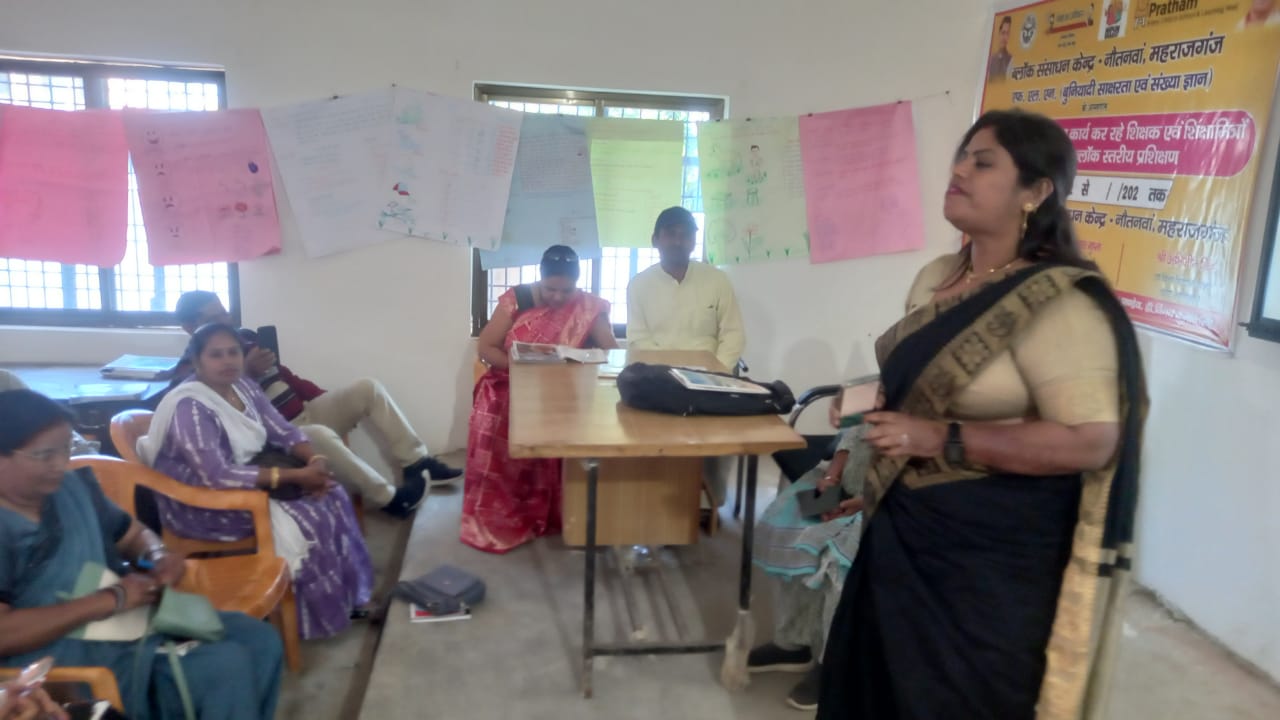 महराजगंज (राष्ट्र की परम्परा)। नौतनवां ब्लाक के रतनपुर वीआरसी पर वीईओ चन्द्र भूषण पाण्डेय के नेतृत्व मे समस्त एआरपी प्रशिक्षक की भूमिका मे कक्षा एक से तीन तक के बच्चों को निपुण बनाने के लिए लगभग 550 शिक्षक व शिक्षा मित्रों को बुनियादी भाषायी एवं गणितीय दक्षता पर प्रशिक्षण दिया गया। प्रशिक्षण के अंतिम दिन एआरपी संयुक्ता सिंह व संदीप वर्मा ने एनसीएफ एफएस 2022 के तहत तीन वर्ष से आठ वर्ष के बच्चों का समग्र विकास, मातृ भाषा, अनुशासन, किताबों का बोझ, खेल खेल मे बच्चों को सीखाना आदि संदर्शिका आधारित बहुत ही सरल ढंग से प्रशिक्षण देकर भाषा व गणित पर प्रशिक्षित किया।